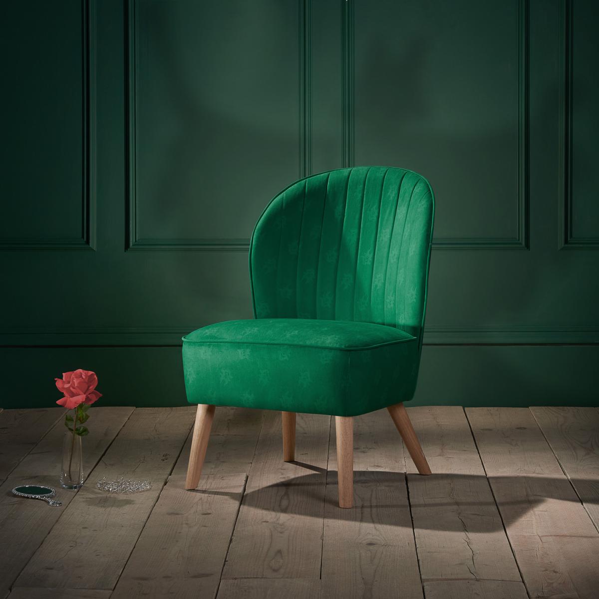 I love this chair’s bold green hue, which makes it a terrific statement piece in both contemporary and traditional interiors. Its plush upholstery and curved silhouette offer comfort, making it perfect for cosy corners or reading nooks. It works well with neutral or muted colour schemes, adding a pop of colour without overwhelming the space. To style it effectively, consider pairing it with brass or wood accents to enhance its vintage charm, or position it near floral or botanical decor for a fresh, lively feel. Practical tips include keeping the surrounding area uncluttered to highlight the chair’s colour, and layering with textured cushions to soften the look and increase comfort. It’s a versatile piece that can serve as both a functional seat and an eye-catching feature.