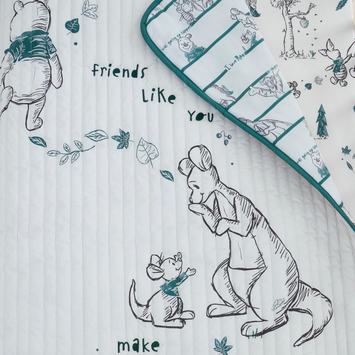 Disney Winnie the Pooh 100% Cotton 4 Tog Cot Bed Quilt Natural (Grey)