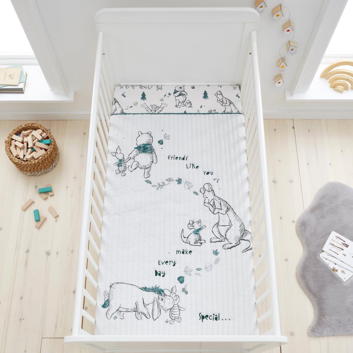I love this Winnie the Pooh cot quilt for adding a gentle touch of character and warmth to a nursery. Its neutral grey colour and timeless design make it versatile, working well in both modern and traditional interiors. It pairs effortlessly with soft pastels, natural wood accents, or monochrome schemes, making it easy to integrate into an existing decor. For styling tips, consider layering it with textured blankets or coordinating bedding in complementary shades to create a cosy yet cohesive look. Practicality-wise, the 100% cotton fabric and 4 tog rating ensure it’s suitable for everyday use while providing the right level of warmth for different seasons. It’s a charming, functional piece that adds personality without compromising on style or comfort.
