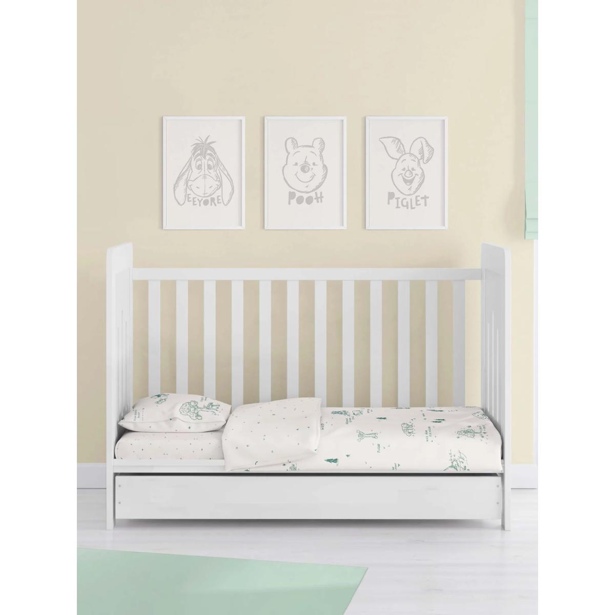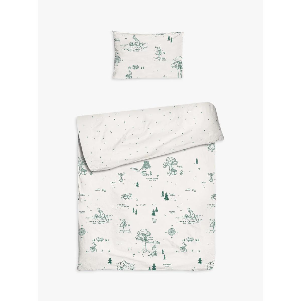 Inspired by Hundred Acre Woods, the home of Winnie the Pooh, this duvet cover and pillowcase set make a great addition to any nursery. Crafted from pure cotton for a breathable feel that won't irritate their skin, it has a 180 thread count to ensure the little one stays comfortable at all times. This set includes one reversible duvet cover and one junior pillowcase. Please remember: Quilts, duvets and pillows are not suitable for children under 12 months due to the risk of overheating. Better Cotton By choosing our cotton products, you’re supporting our investment in Better Cotton’s mission to help cotton communities survive and thrive while protecting and restoring the environment. Better Cotton Farmers are farmers who care for the environment and respect workers’ rights and wellbeing. This product is sourced via a system of mass balance and therefore may not contain Better Cotton. bettercotton.org/massbalance
