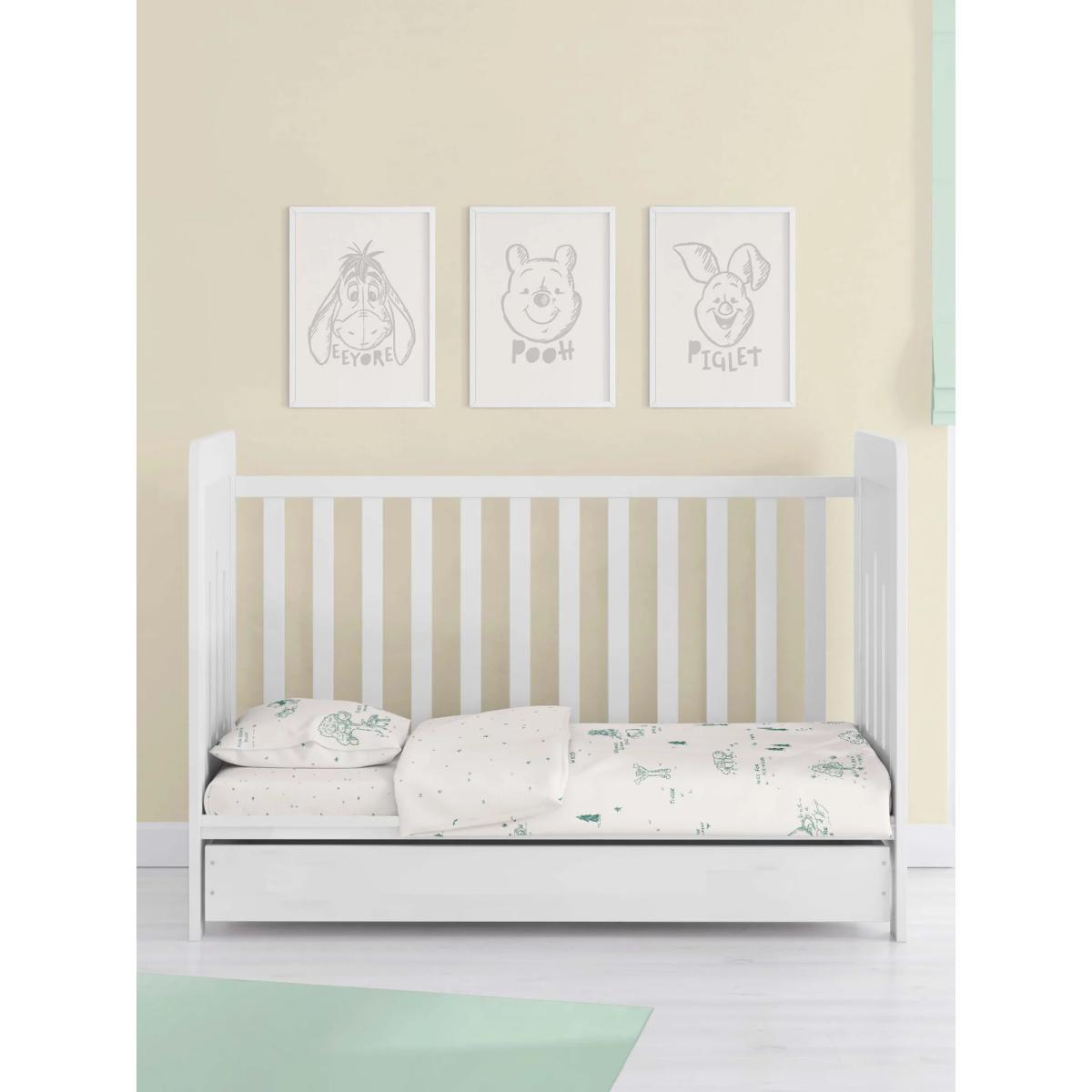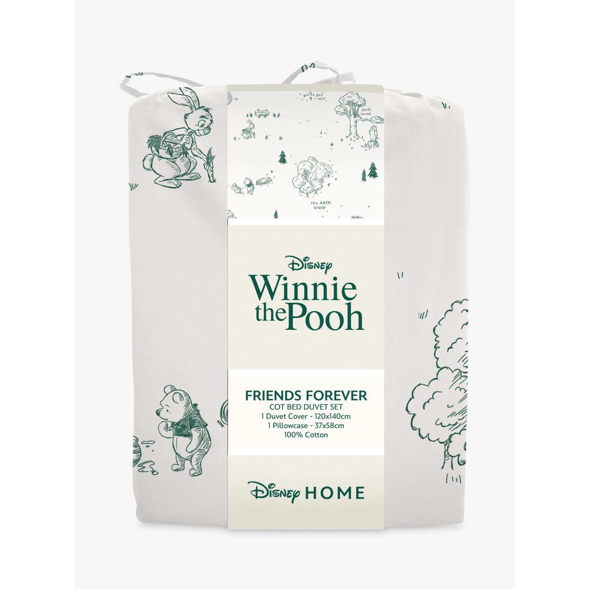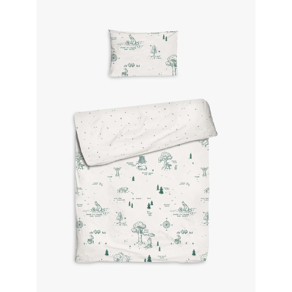 Inspired by Hundred Acre Woods, the home of Winnie the Pooh, this duvet cover and pillowcase set make a great addition to any nursery. Crafted from pure cotton for a breathable feel that won't irritate their skin, it has a 180 thread count to ensure the little one stays comfortable at all times. This set includes one reversible duvet cover and one junior pillowcase. Please remember: Quilts, duvets and pillows are not suitable for children under 12 months due to the risk of overheating. The Better Cotton Initiative (BCI) is a not-for-profit organisation who exists to ‘make global cotton production better for the people who produce it, better for the environment it grows in, and better for the sector's future. BCI works with partners around the world such as WWF, Solidaridad and Cotton Connect to train farmers to produce cotton more sustainably. By buying cotton products from John Lewis, you're supporting the training of these farmers to use water efficiently, care for the health of the soil and natural habitats, reduce the use of the most harmful chemicals and apply principles of fair and decent work.