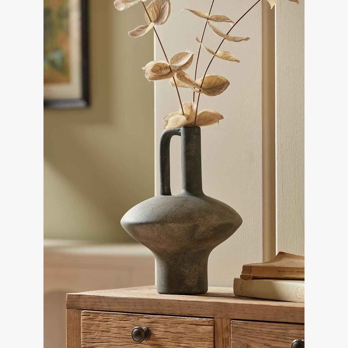 I really like the distressed look of this vase-it adds texture and character to a variety of interiors. It works particularly well in relaxed, eclectic spaces or minimalist schemes where its earthy tones and rough finish can stand out. For practical styling, consider pairing it with dried or faux botanicals to enhance its organic vibe, or use it as a statement piece on a bookshelf, sideboard, or coffee table. Keep the surrounding décor simple to let the vase’s unique finish be the focal point, and don’t be afraid to mix it with other matte or rustic accessories for a cohesive look.