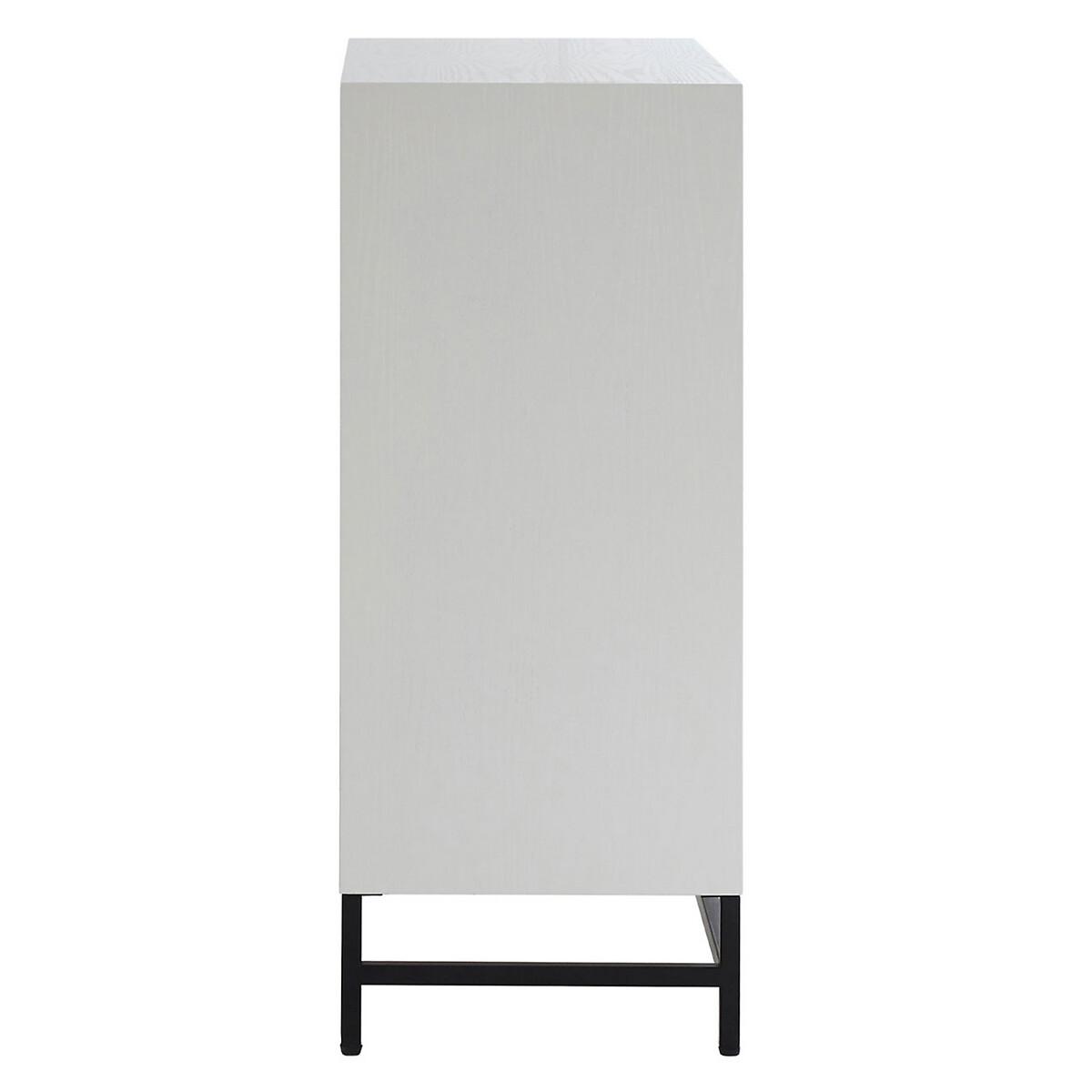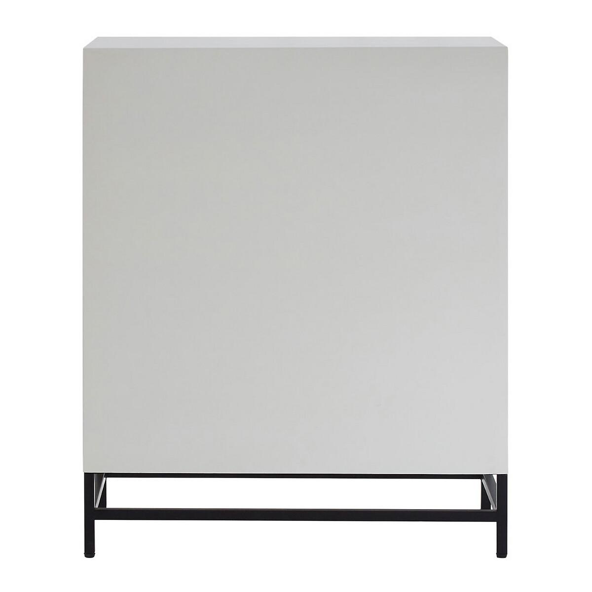 The white cabinet features two doors, both of which are decorated by a distinctive geometric pattern. Created from fir wood, the doors have a distressed finish that enhances the diamond pattern. Small black metal handles mirror the angled pattern and coordinate with the black metallic base, creating a cohesive look. Product Dimensions: 96cmx80cmx40cm. Please remember to measure your available space before ordering. Packaged Dimensions: 104cmx 86cmx 48cm Weight: 24.5kg. Composition: Fir Wood, MDF, Metal This product will be dispatched by one of our trusted suppliers. You’ll be contacted by their selected courier about your delivery.