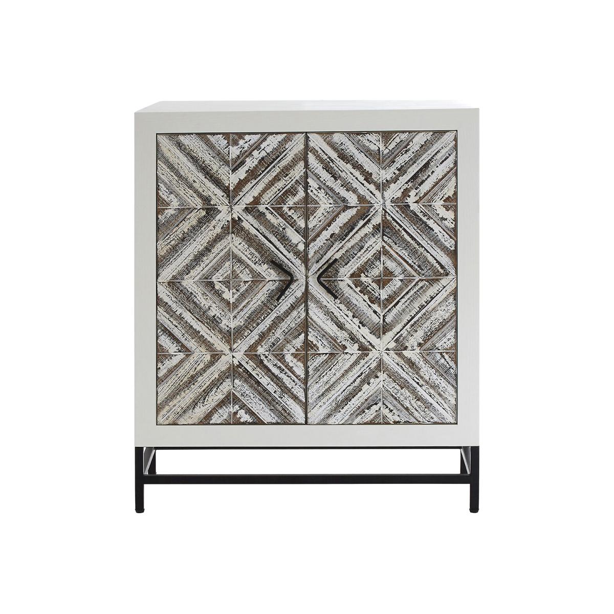 Distressed Geometric Fir Wood 2 Door Cabinet