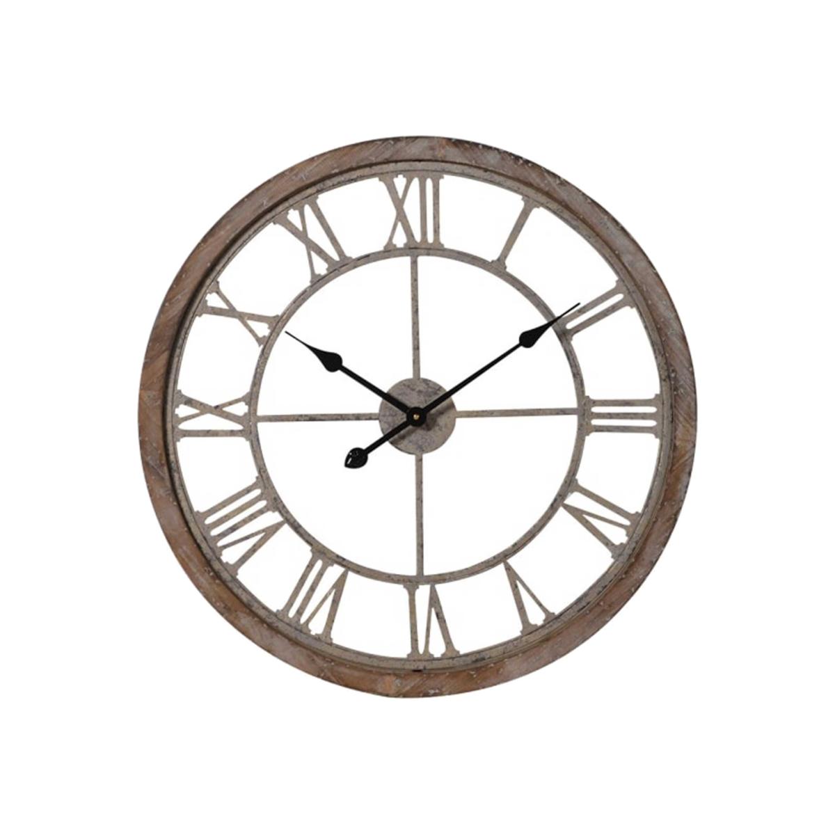Distressed Skeletal Wall Clock, Round, Neutral Wood | Barker & Stonehouse