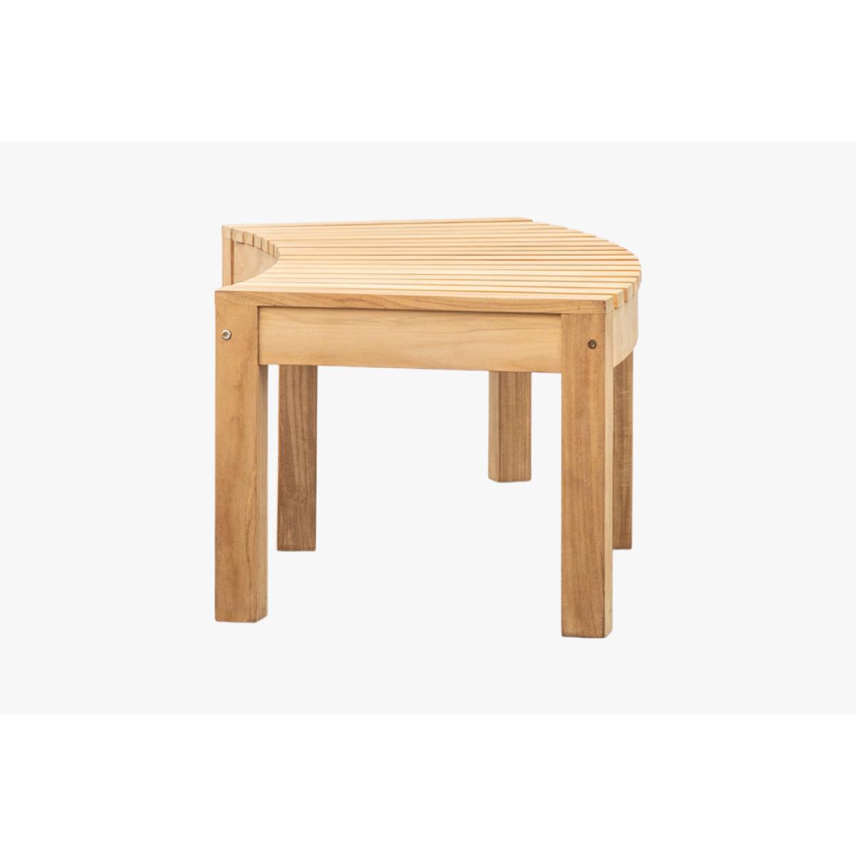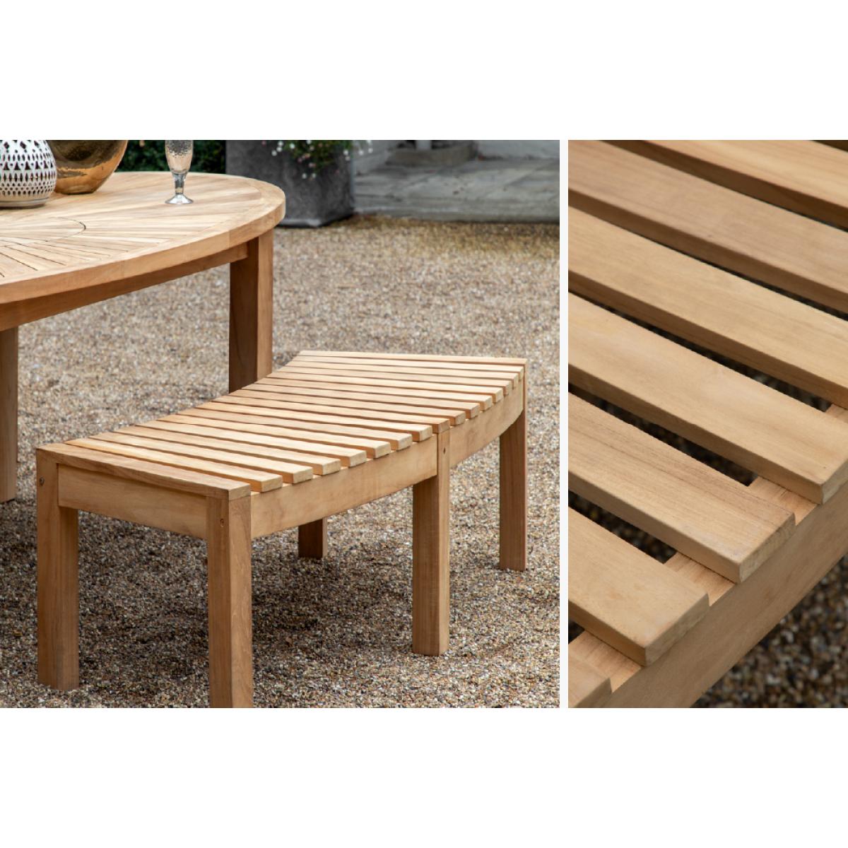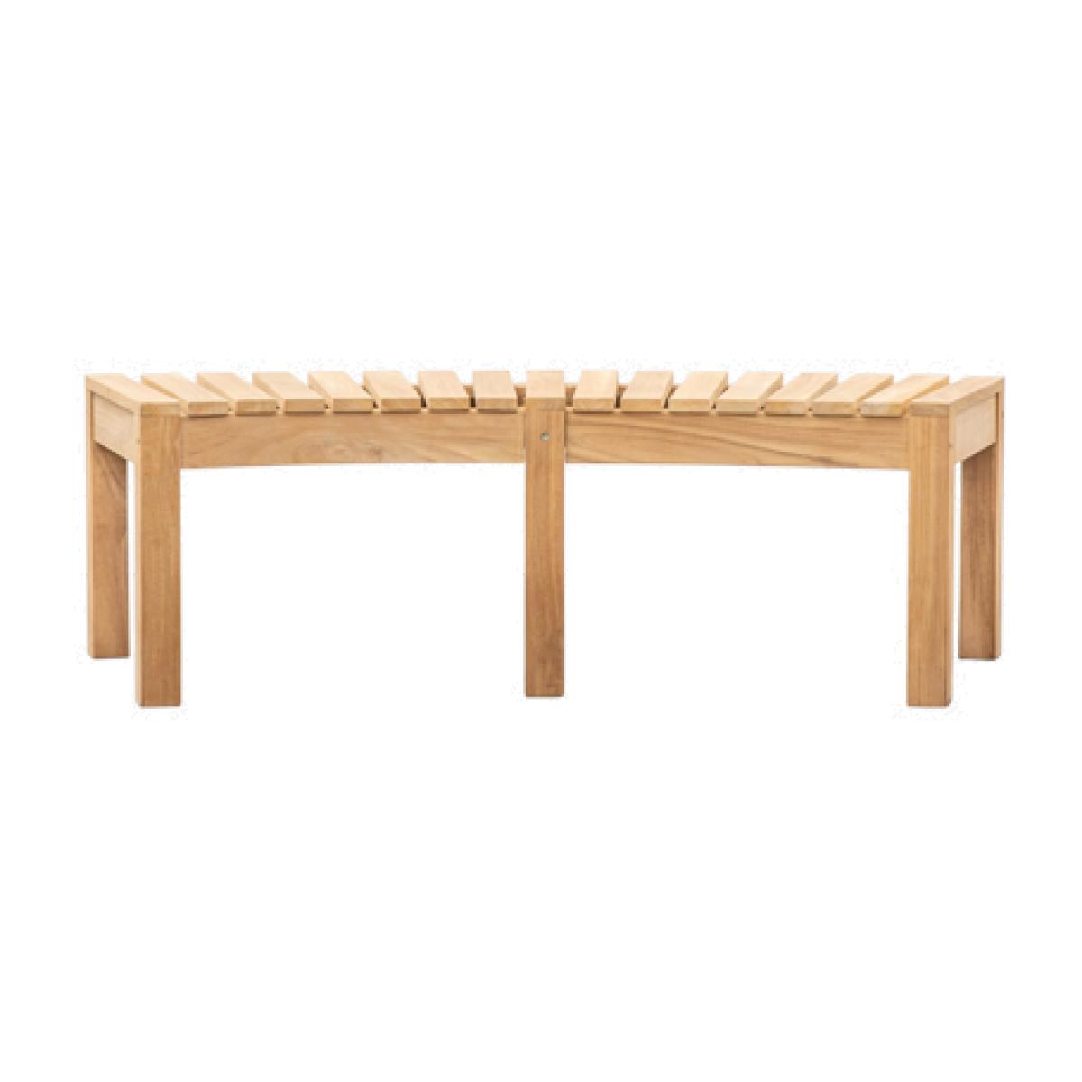 Gently curved and beautifully crafted the Dither Bench's teak wood frame is stunningly chic, perfect to use with a coordinating dining table or simply by itself as just the right place to dither in the sun.