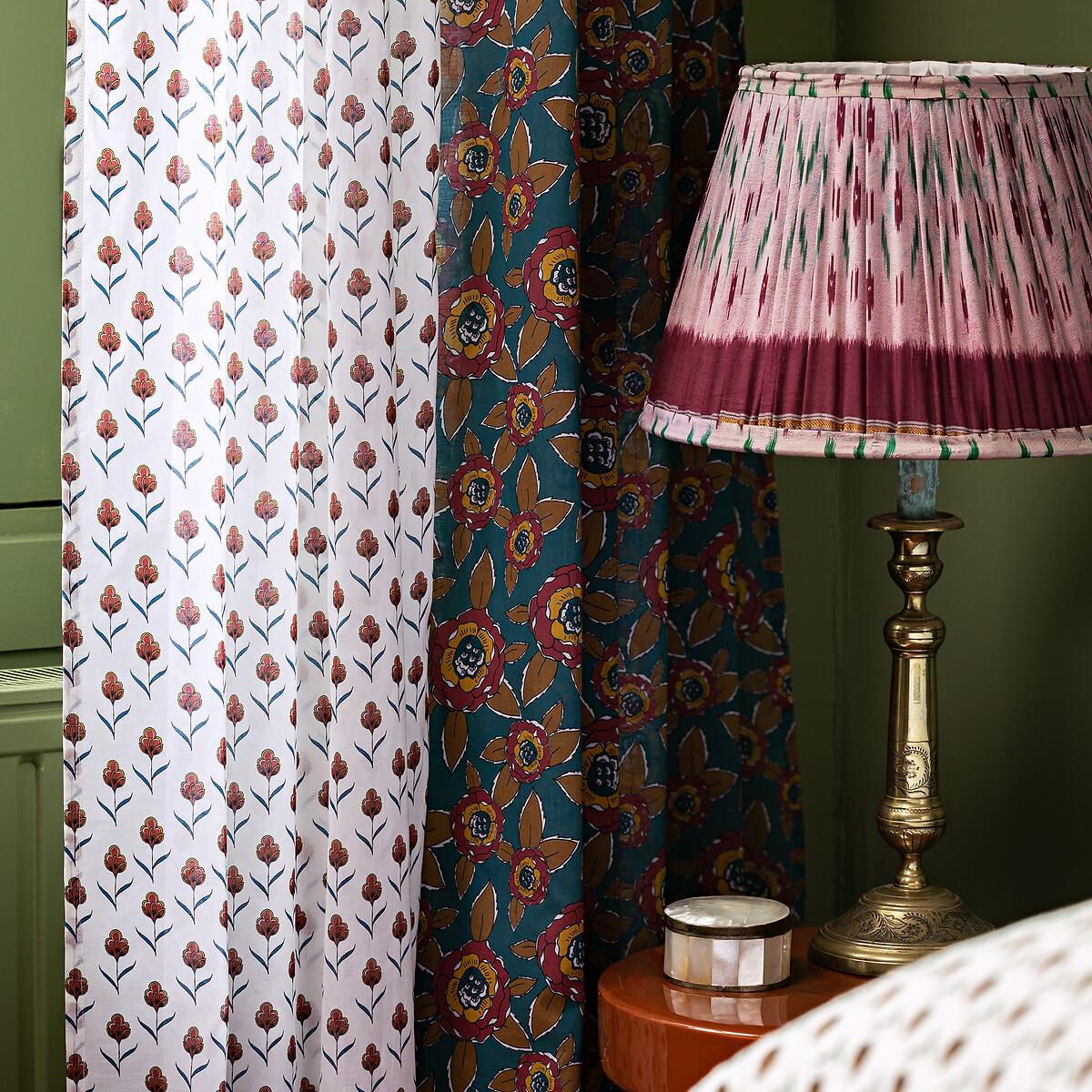 Jamini, the French brand inspired by Indian culture, has teamed up with La Redoute Intérieurs to create a capsule collection of home textiles combining floral prints and Art Deco patterns. Showcasing varying shades of curry yellow, terracotta and blue, the collection brings together the elegance of traditional Indian heritage with French chic, creating a harmonious fusion of the two cultures. An enchanting invitation to travel. Product Details • 100% cotton • Cotton voile • Floral print • Finished with tie details. Care instructions • Machine washable • Fabrics made from natural fibres may shrink in the first wash. Always wash your curtains before making any alterations. Size • Drop 260 x Width 110cm