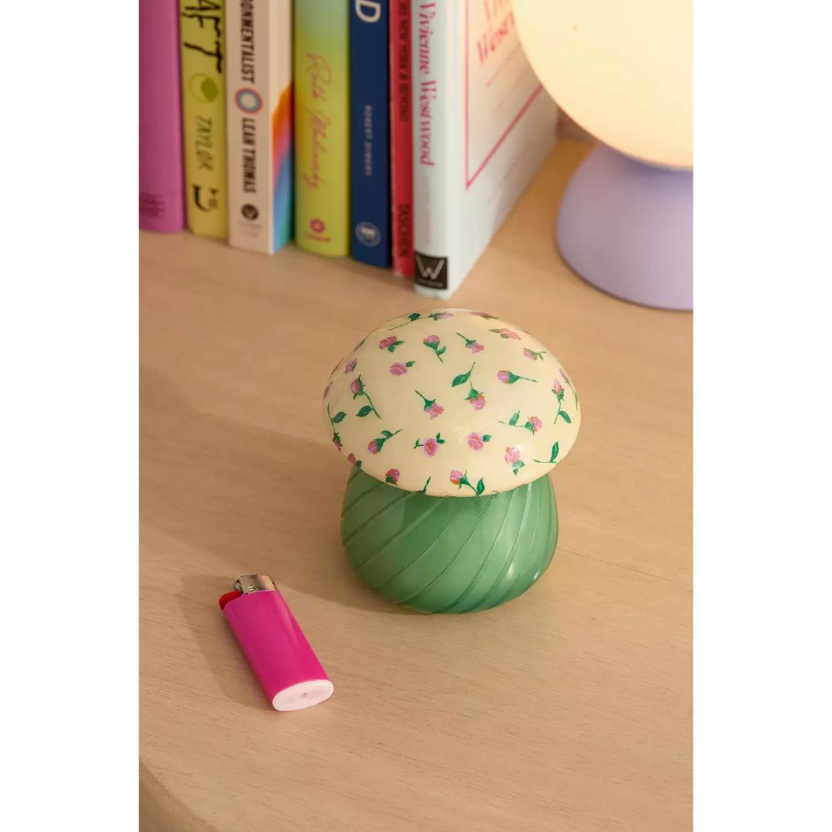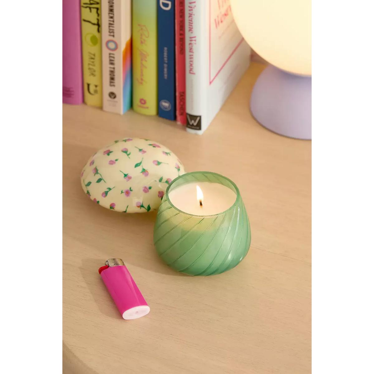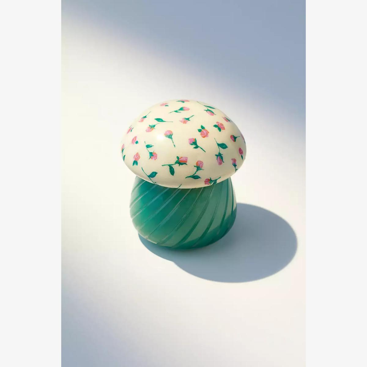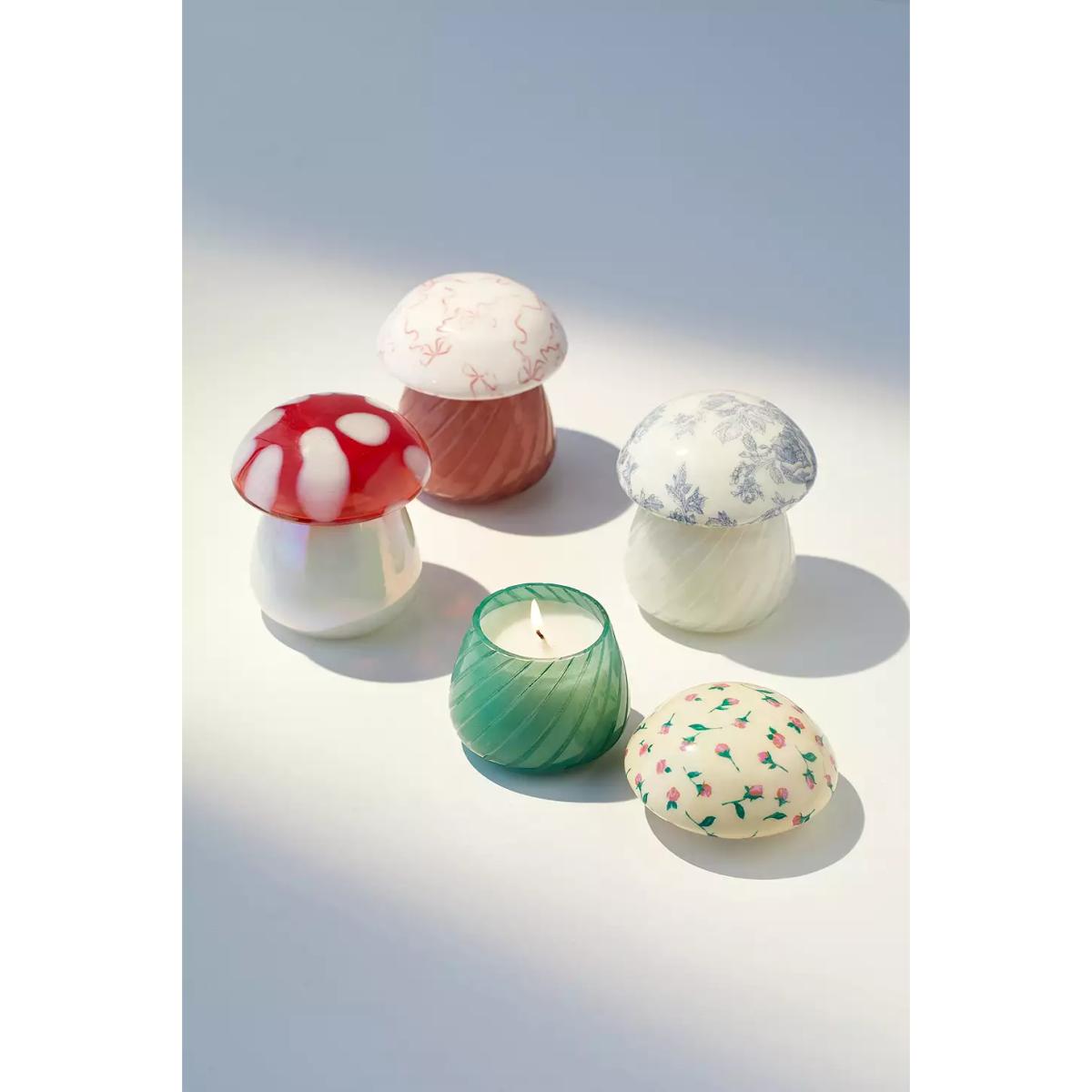 Create a warm glow in your space with this mushroom-shaped candle. With a removable top, this candle creates a tabletop lamp silhouette. The base is wax-filled with a wick at its centre to burn for hours. Scent: Nirvana Top:Citrus, Mandarin, Bergamot, Lime, Lemon Mid: Spice, Ginger, Cardamom, Cinnamon Base: Cedar Wood, Amber, Sandalwood For the best burn experience, keep the following in mind: \- The first time you light your candle, allow it to burn until the wax pool melts all the way to the edge; for a larger candle, this may take several hours. Wax has "memory," so if it is extinguished with a partial pool, that will prevent a full, even pool from forming in the future. \- Trim your wick each time you light the candle, removing any "bloom" from the previous burn. We recommend lighting a wick that is 1/4-1/2" in length. \- Ensure that your candle is placed on a heat-safe surface. \- Do not allow wick trimmings, dust, or other materials to accumulate in the wax pool. \- To ensure safety and longevity, be sure to check the bottom of your candle for additional instructions, including details on when to discontinue use. **Content + Care** \- Glass, Wax \- Wipe clean