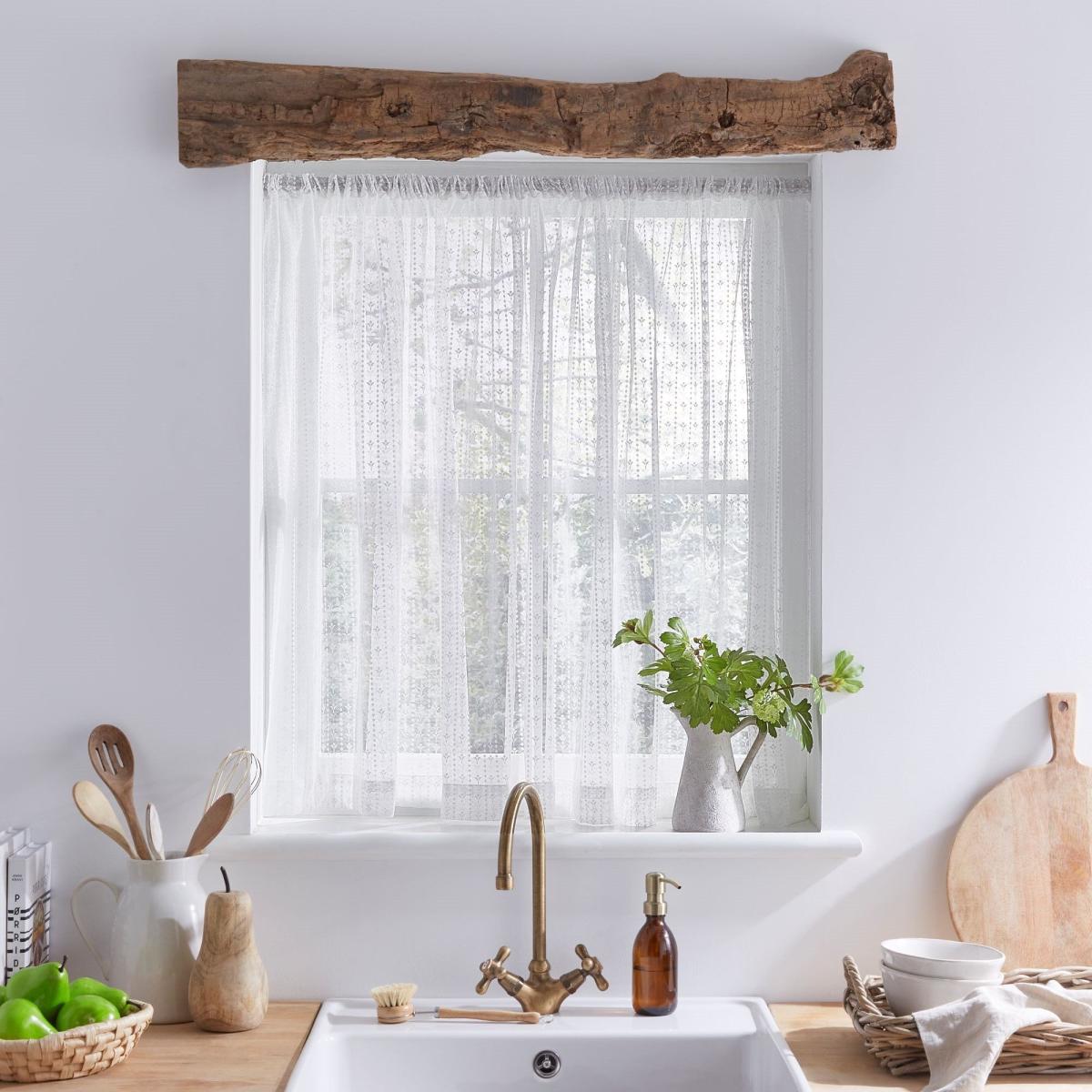 I really like this Ditsy Stripe Slot Top Voile - it offers a crisp, fresh look that’s perfect for layering in many interiors. Its white, semi-sheer fabric allows plenty of natural light to filter through, making it ideal for cosy kitchens or living rooms where you want brightness without sacrificing privacy. This type of voile works well in both modern and cottage-style homes, adding a subtle pattern that keeps things from feeling too plain. Practical styling tips include pairing it with plain curtains or roller blinds for a layered look or using it alone in minimalist spaces for a breezy, effortless feel. It's a versatile choice that can soften a room while maintaining a clean, contemporary aesthetic.