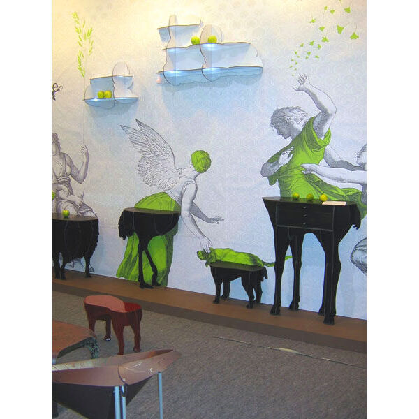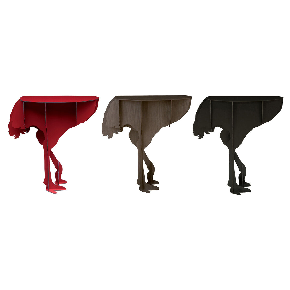 Ibride jostles our universe domesticates and we propose a company furniture to adopt with humor! One tames with big happiness this console Diva in emeu forms. This company furniture is domesticated, of course out-of-place, but serviable, crosses by excellence. Attention, lightly eccentric! Exist in black, red and white.