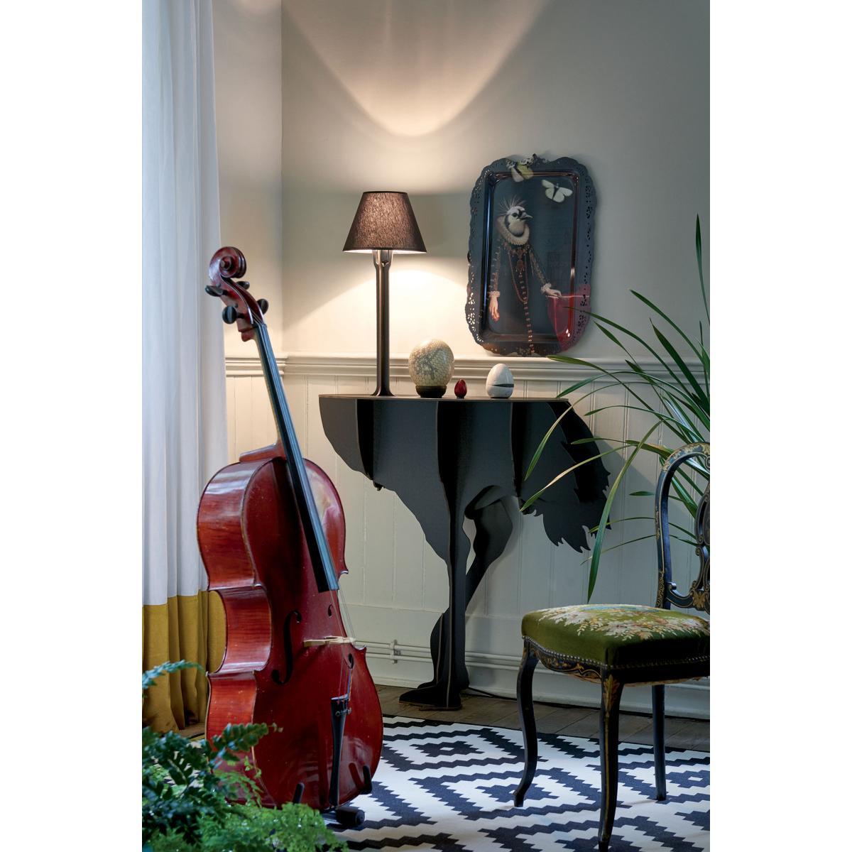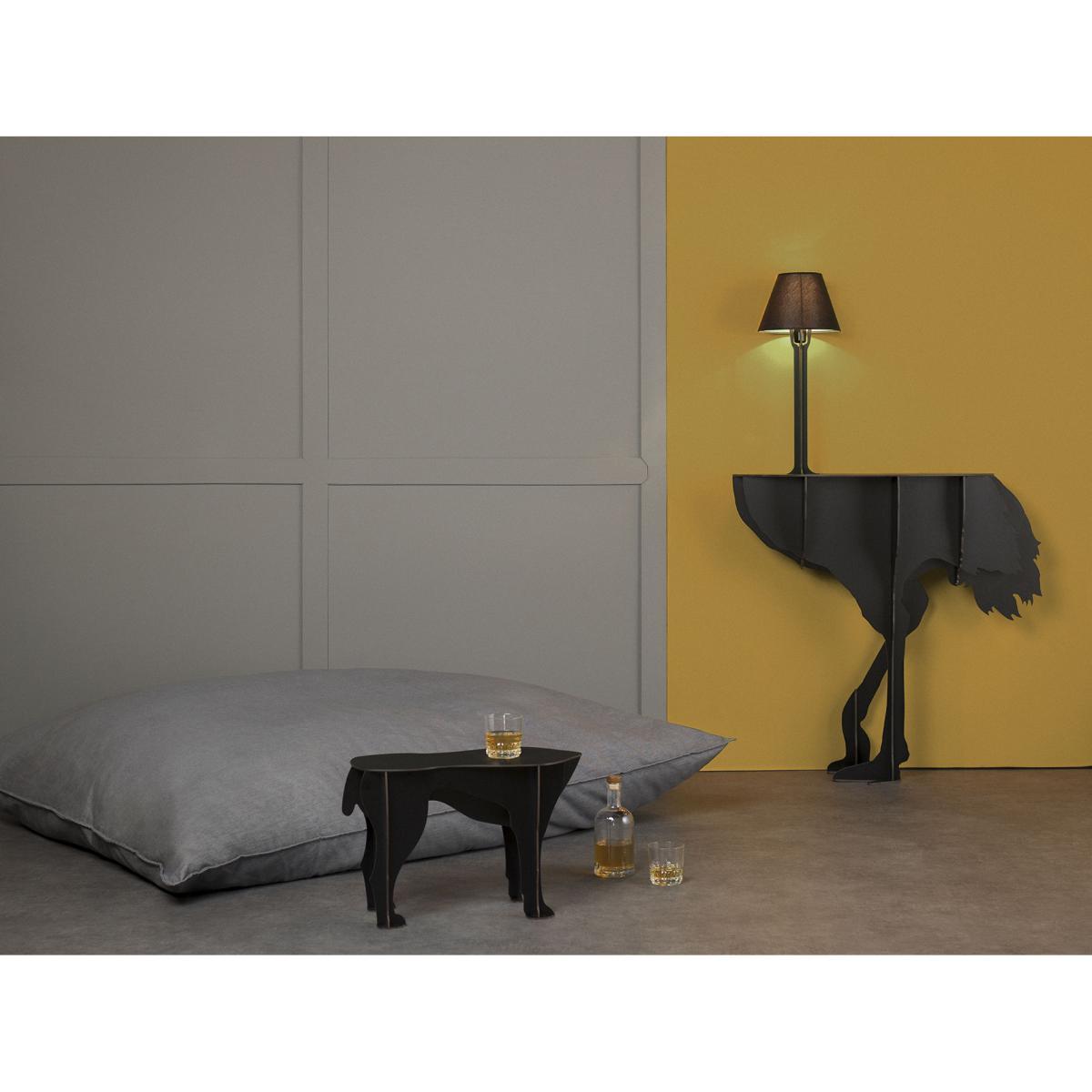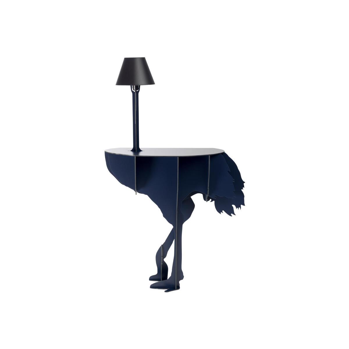 The elegant Diva ostrich wall console, more imaginative and light than ever, is now being released with an elegant lampshade! Both console and lamp, it surprises and affirms its dynamic femininity. This fun, ornamental and practical furniture is ideal in an entrance or a lounge. It is also perfect for a bedroom, with a mirror on top, to place all your beauty products! The elegant cable is surrounded by black fabric. The on/off switch is located on the socket. Ibride is shaking up our domestic world and offering us furniture to adopt like a pet! We happily tame this domestic ostrich, that is certainly incongruous, but obliging and a hybrid par excellence. Beware, slightly eccentric!.