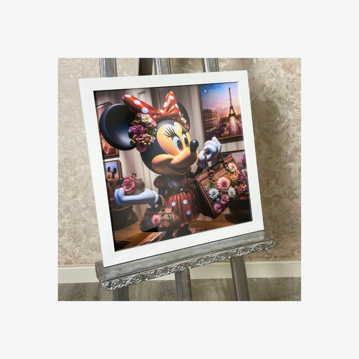 Diva Minnie Mouse 40cm square artwork with white frame.   Diva Minnie Mouse 40cm square artwork with white frame.
