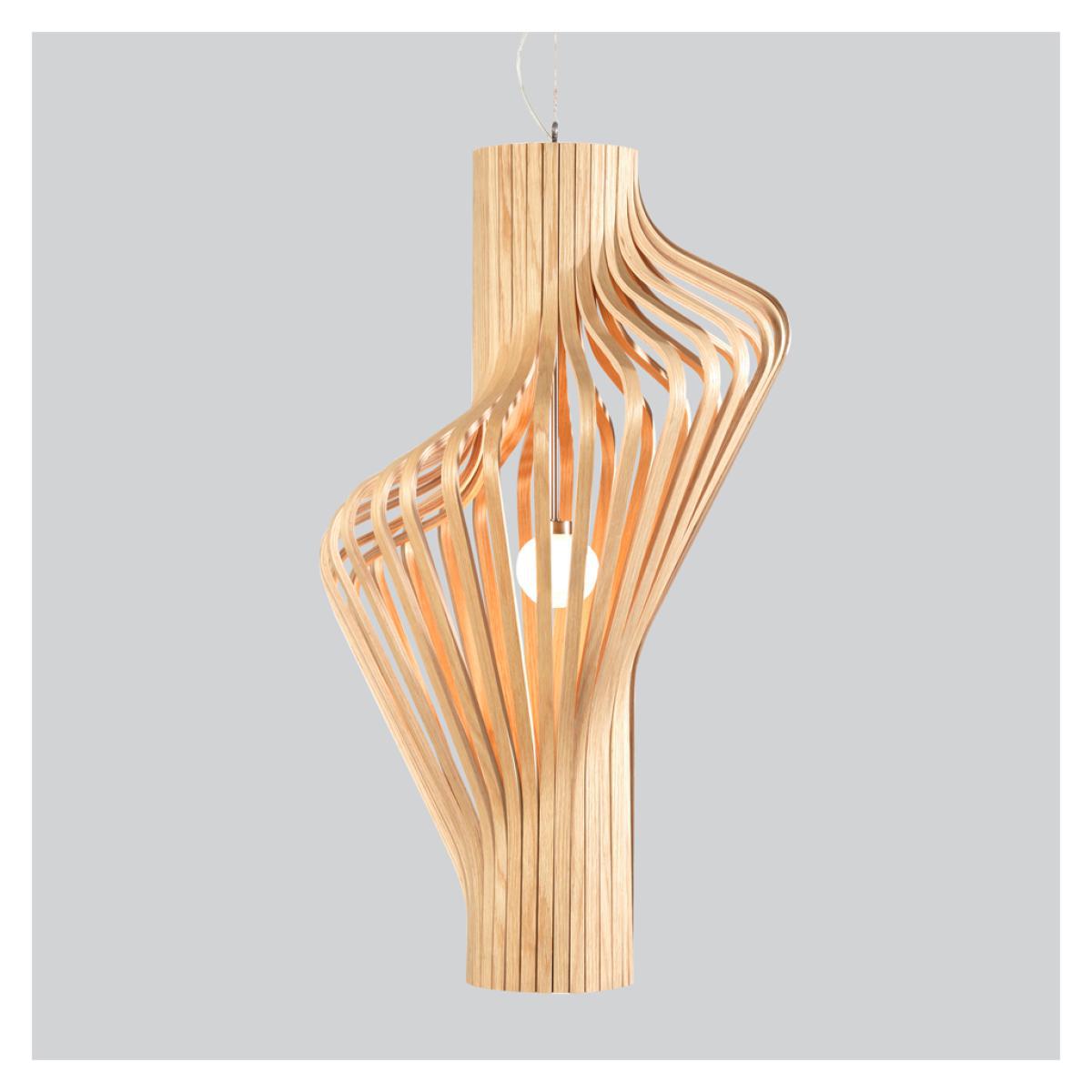 Named after those with extravagant personalities, the Diva Pendant Light by design duo Peter Natedal and Thomas Kalvatn Egset certainly lives up to its moniker; boasting a bent oak-laminated body, the inner stem produces a diffused light that is sure to take centre stage. Produced by Northern Lighting and handcrafted from 32 individual strips of wood, the oak Diva Pendant Light is crafted using traditional Norwegian tools and techniques of wood craftsmanship for a truly statement structure. Showcasing a dynamic spiralling shape, the Diva Pendant Light can be suspended for maximum impact, showcasing a beautiful design from every angle, with a hand-blown glass globe within that emits a diffused emanation. Designers Peter Natedal and Thomas Kalvatn Egset both hail from families with long furniture making and retailing heritages, using their history to influence their distinctly modern approach to product design. Requires 1 X G9 HALOGEN Max 60W bulb (not included)