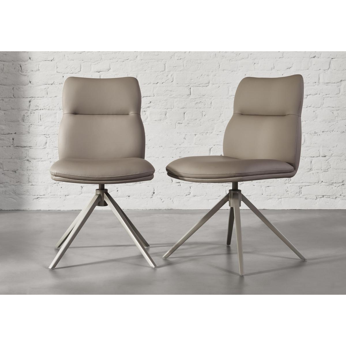 This is one Diva you’ll want to bring home. With showstopping looks and incredible durability, the dining tables and dining sets in this range deliver a winning combination of form and function. Oval-shaped dining tables with statement X-shaped pedestal bases feature clever swivel top mechanisms. Dining table and sideboard tops are made with matt-finished white ceramic bonded to tempered glass for family-friendly durability. And the range’s dining chairs are modern and glam in style with deep cushioning, auto return swivel bases and metal legs in a choice of finish. The Diva collection is destined to bring drama to your dining room – in the most stylish of ways. Enjoy bold modern style on a striking scale with our Diva range. This swivel-base dining chair has plenty of glam flair as well as superb comfort and comes in a choice of metal leg finishes. Why you'll love it Our Diva collection delivers truly one-of-a-kind style. Guaranteed to transform your dining space and wow your guests. This ultra-comfortable modern dining chair is both elegant and glam. In a choice of 2 metal finishes for the legs – bronze and silver. Beautifully soft faux leather upholstery in a choice of taupe shades. Auto-return swivel mechanism. Also available in sets of 2, 4 and 6 dining chairs. This swivel dining chair is part of our Diva range. What you need to know Metal frame and legs. Cushioned with foam. Item code: DIVACH--DTB-001