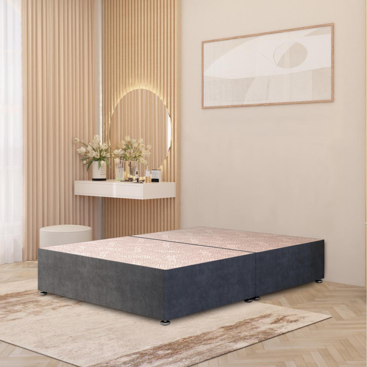 The Plush Velvet Divan Bed Base combines durability, practicality, and modern style. Expertly handcrafted in the UK from strong timber, this solid platform top divan base provides the perfect foundation for your mattress, enhancing comfort and extending its life. Upholstered in luxurious plush velvet fabric, it brings a soft, elegant finish to any bedroom. Choose from no drawers, 2 drawers, or 4 drawers for a versatile storage bed solution that keeps your space organised. Designed for lasting strength, the base sits at a practical height with gliders for easy movement and stability. 30.5cm without the glides, or 34.5cm with the glides attached.