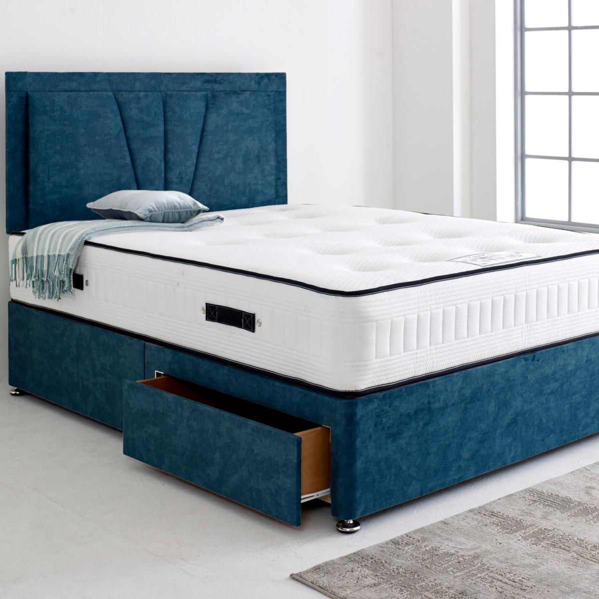 This elegant Divan Bed Headboard has been carefully designed with precision and care, showcasing the finest British craftmanship, and ensuring long lasting quality. Impeccable design featuring a 24" inch headboard with a stylish V desing giving it an elegant and unique finish, adding a touch of class to any bedroom. This bed shows sophistication and elegance, adding a touch of luxury to your bedroom. Customise your style and express your unique taste with this luxury Divan Bed Headboard. Designed to pair seamlessly with your preferred mattress the Divan Bed allows you to create a personalised sleep sanctuary. Elevate your bedroom with this luxurious Divan Bed and experience the perfect blend of elegance, style and quality. Transform your space in a haven of comfort and sophistication.