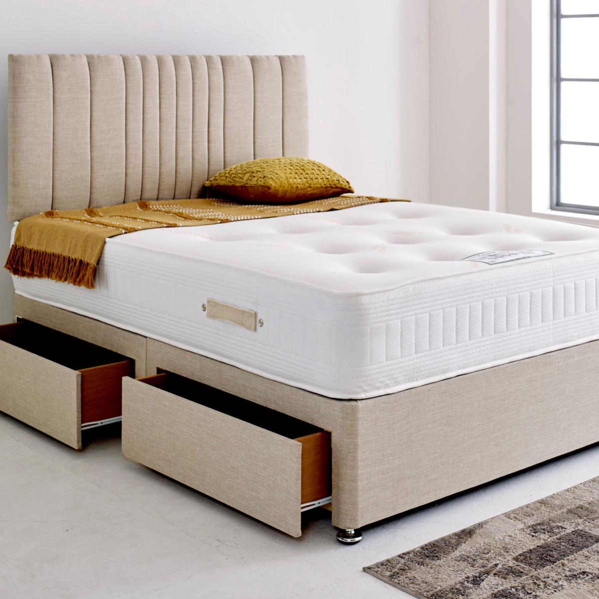 This elegant Divan Bed and Headboard has been carefully designed with precision and care, showcasing the finest British craftmanship, and ensuring long lasting quality. Impeccable design featuring a 24" inch headboard with a stylish lined desing giving this bed an elegant finish, adding a touch of class to any bedroom. This bed shows sophistication and elegance, adding a touch of luxury to your bedroom. Customise your style and express your unique taste with this luxury Divan Bed and Headboard. Designed to pair seamlessly with your preferred mattress, this Divan Bed allows you to create a personalised sleep sanctuary. Elevate your bedroom with this luxurious Divan Bed and experience the perfect blend of elegance, style and quality. Transform your space in a haven of comfort and sophistication.