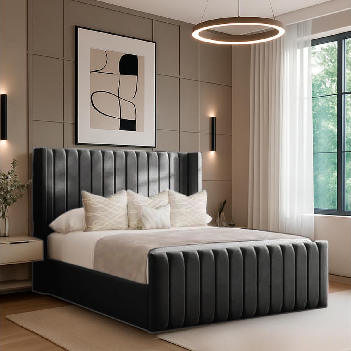 The luxurious Tiffany Divan Bed showcases the finest British craftmanship, made with absolute precision and care ensuring long lasting quality. This elegant Divan Bed features a stunning floor standing winged headboard with a matching footboard both with a stylish design, adding a touch of class to any bedroom. Designed to pair seamlessly with your preferred mattress, allowing you to create the perfect sleep sanctuary. This stylish Divan Bed has been crafted with the finest materials, it boasts durability, comfort and promising years of restful night's sleep. Elevate your bedroom with the Tiffany Divan Bed, with a perfect blend of elegance, style and quality and transform your space into a haven of comfort and sophistication, with a range of beautiful colours to choose from.
