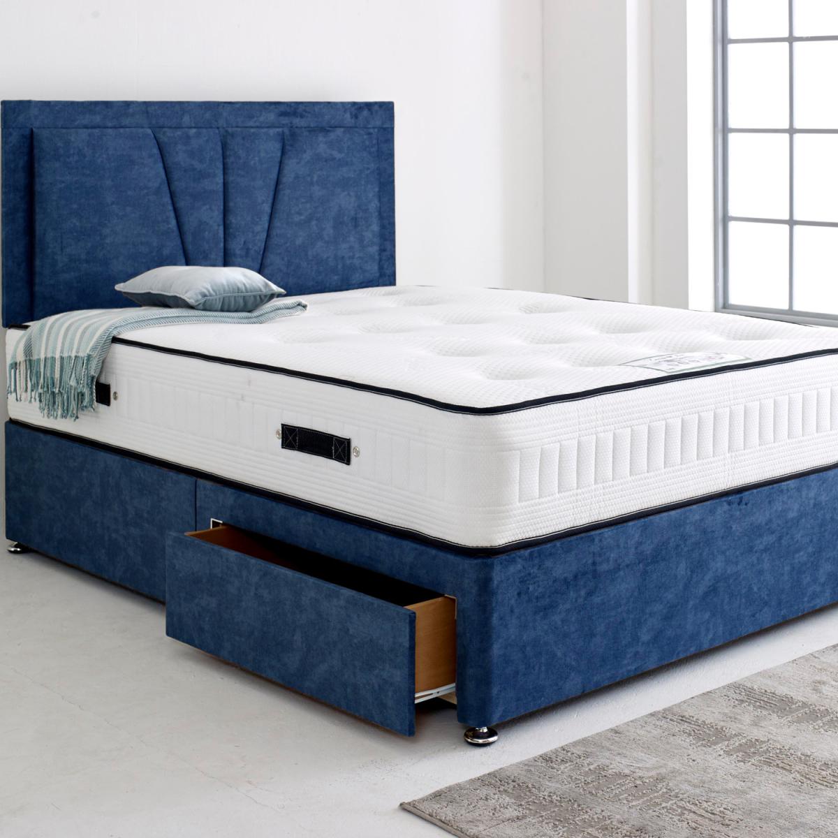 This elegant Divan Bed and Headboard has been carefully designed with precision and care, showcasing the finest British craftmanship, ensuring long lasting quality. With an impeccable design featuring a 24" inch headboard with a stylish V design giving it an elegant and unique finish, adding a touch of class to any bedroom. This bed shows sophistication and elegance, adding a touch of luxury to your bedroom. Customise your style and express your unique taste with this luxury Divan Bed and Headboard. Designed to pair seamlessly with your preferred mattress the Divan Bed allows you to create a personalised sleep sanctuary. Elevate your bedroom with this luxurious Divan Bed and experience the perfect blend of elegance, style and quality.