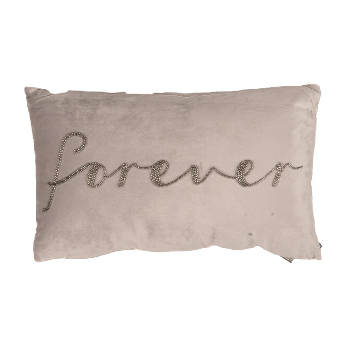 Add some glamour to your home with this Divante Forever Beaded Grey Cushion. With the sweet cursive 'forever' beaded into the cushion, this cushion will add a loving finishing touch to a cosy living room or bedroom.