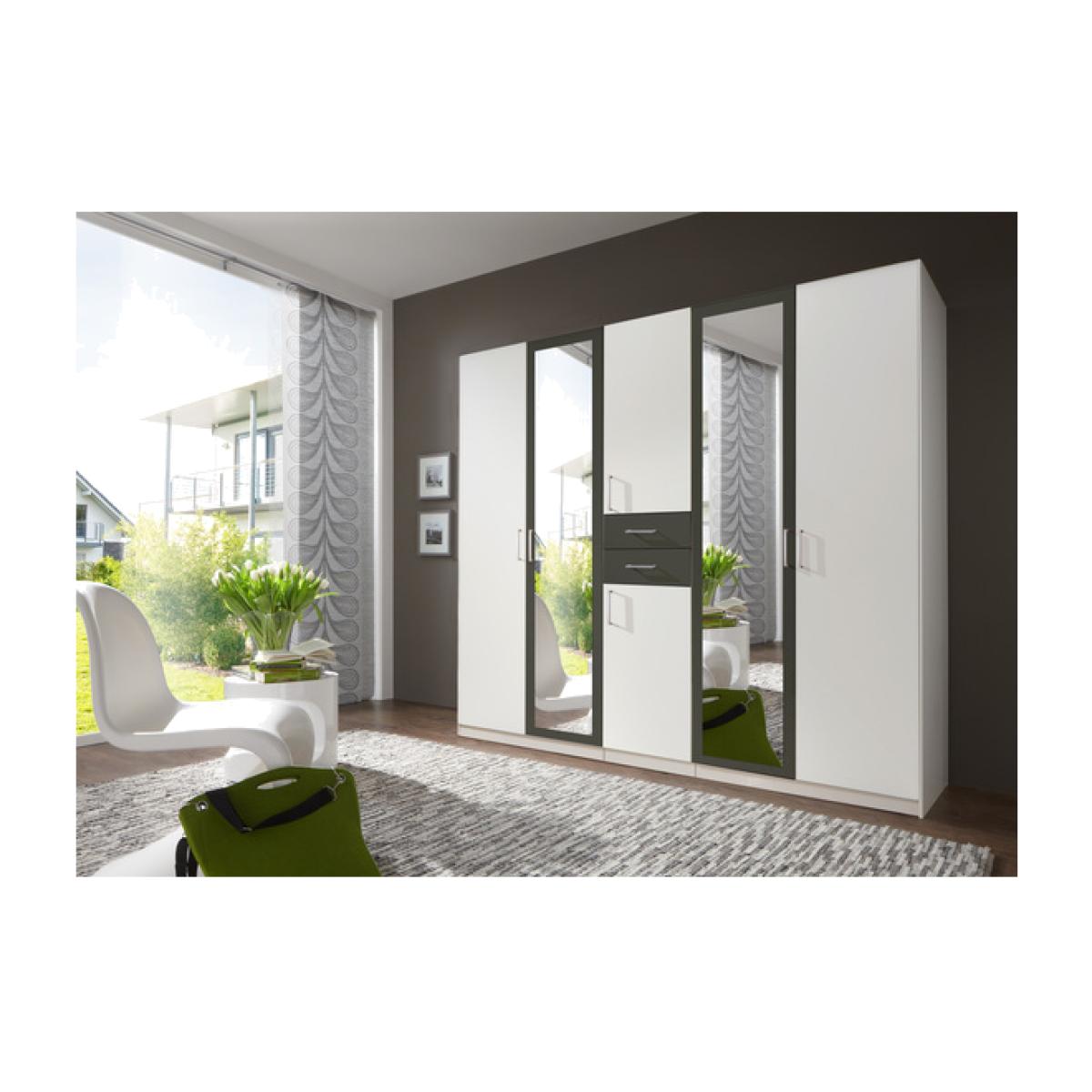 The Diver 6 Door wardrobe has a sleek and contemporary look, finished with Mirrored door. The wardrobe has trendy handles which give the wardrobe a modern look. The wardrobe has two hanging rails and a top storage shelf and it has a total of 5 shelves divided into three sections.