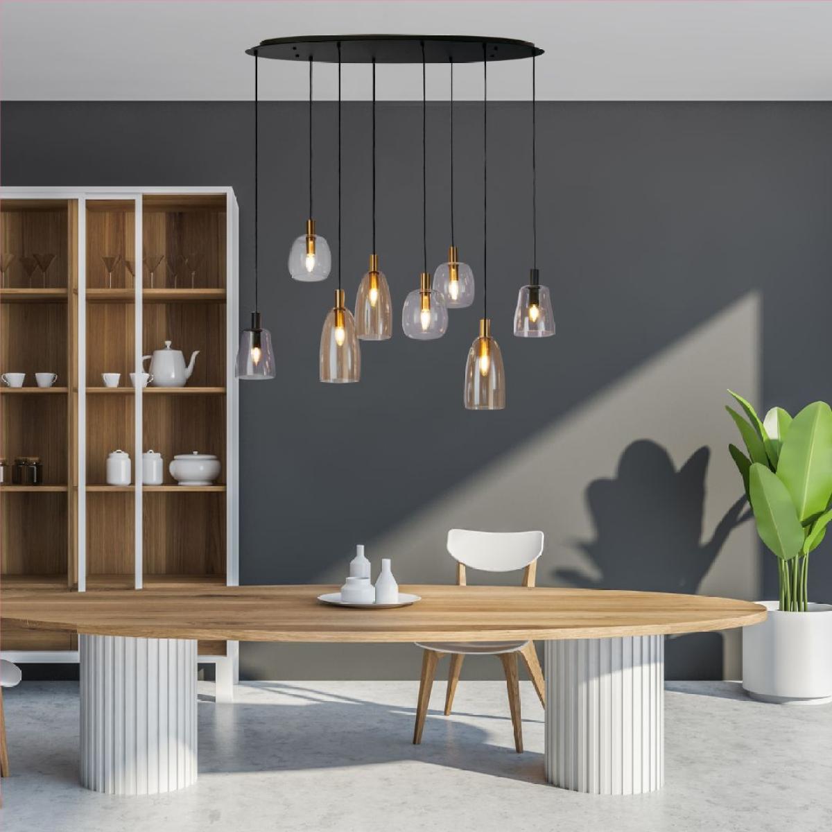 I love this pendant light for its sleek black metal finish and clusters of glass shades that add both visual interest and sophisticated edge. It works especially well in modern, industrial, or contemporary interiors, and can elevate dining rooms, kitchens, or even statement living spaces. When styling, consider pairing it with minimalist furniture to let the light fixture stand out, and ensure the height is adjustable so the pendants hang at an appropriate level over tables or islands. For a cohesive look, try coordinating with other black or metallic accents in the room, and keep surrounding decor simple to let the striking design of the light be the focal point.