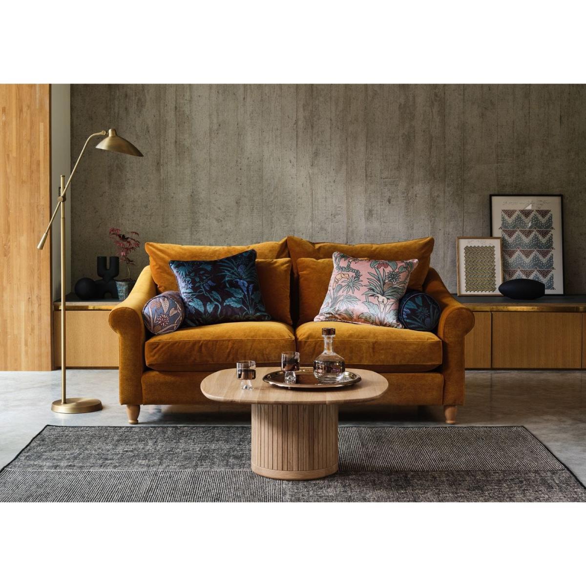 In collaboration with the Natural History Museum, Divine Savage’s Botanize collection exhibits striking illustrations that represent plant species across the globe, discovered during epic exploration adventures. This bolster is made from silky beige velvet that has been stamped with an exotic green and yellow print. Great for combining with coordinating square cushions, its cylindrical form means it sits neatly against sofa armrests for added comfort and style.