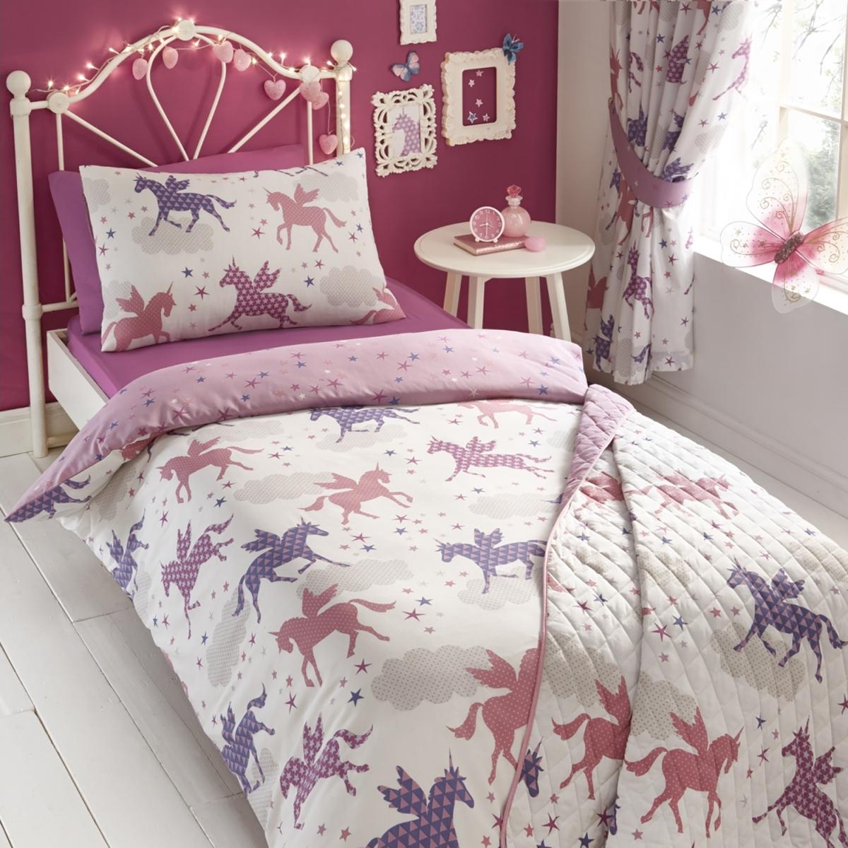 Divine Unicorns Printed Duvet Cover and Pillowcase Set - White / Single