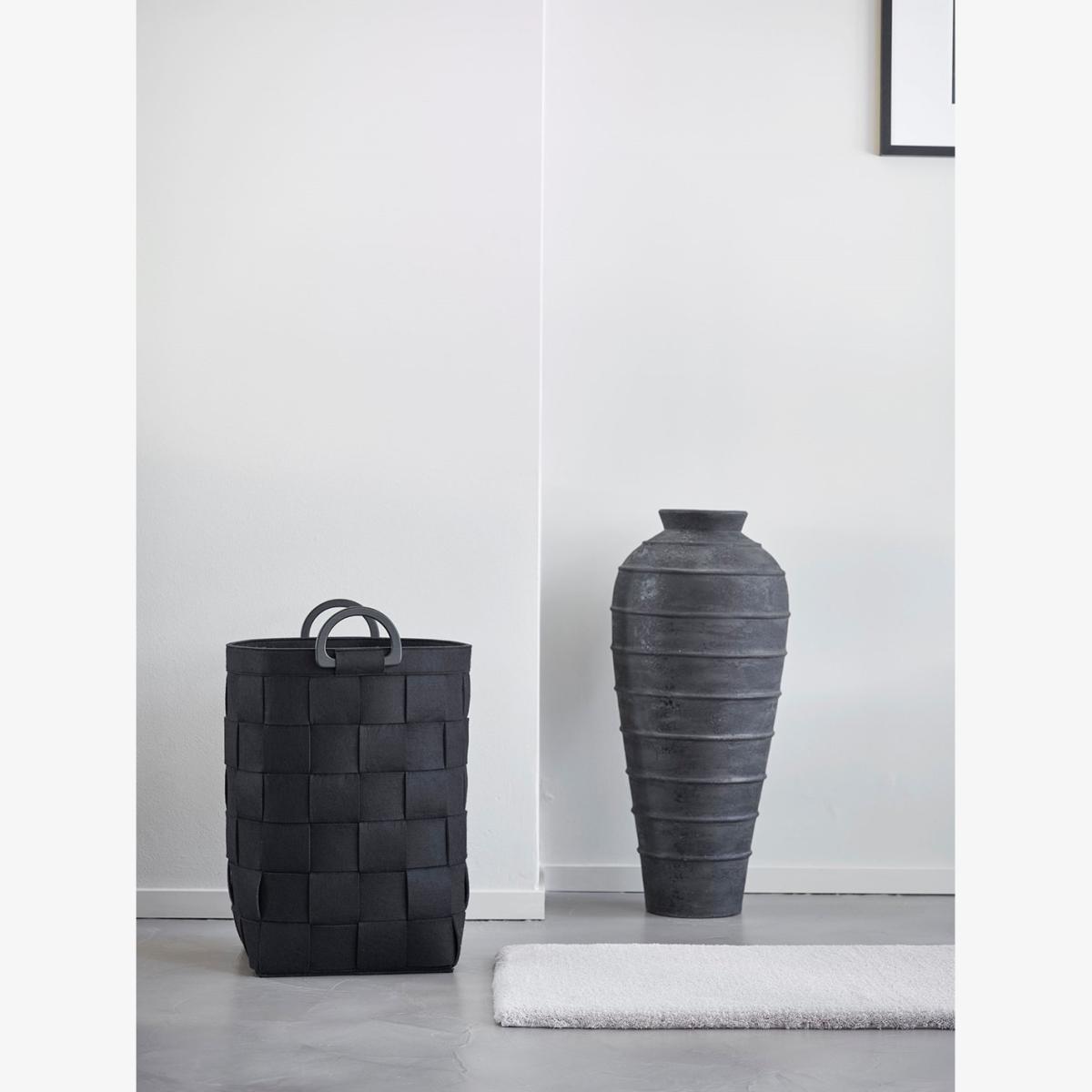I love the Dix laundry basket for its sleek, modern design that easily blends into various interior styles. Its black, woven appearance adds texture and a contemporary touch, making it suitable for minimalist, urban, or even industrial spaces. It works particularly well in laundry rooms, bathrooms, or guest bedrooms, where practicality and aesthetics are equally important. For styling tips, try pairing it with monochrome or neutral palettes for a cohesive look, or place it alongside other textured materials like matte ceramics or leather accents to add depth. It’s also versatile enough to double as a storage solution for items like blankets or magazines, making it both functional and stylish.