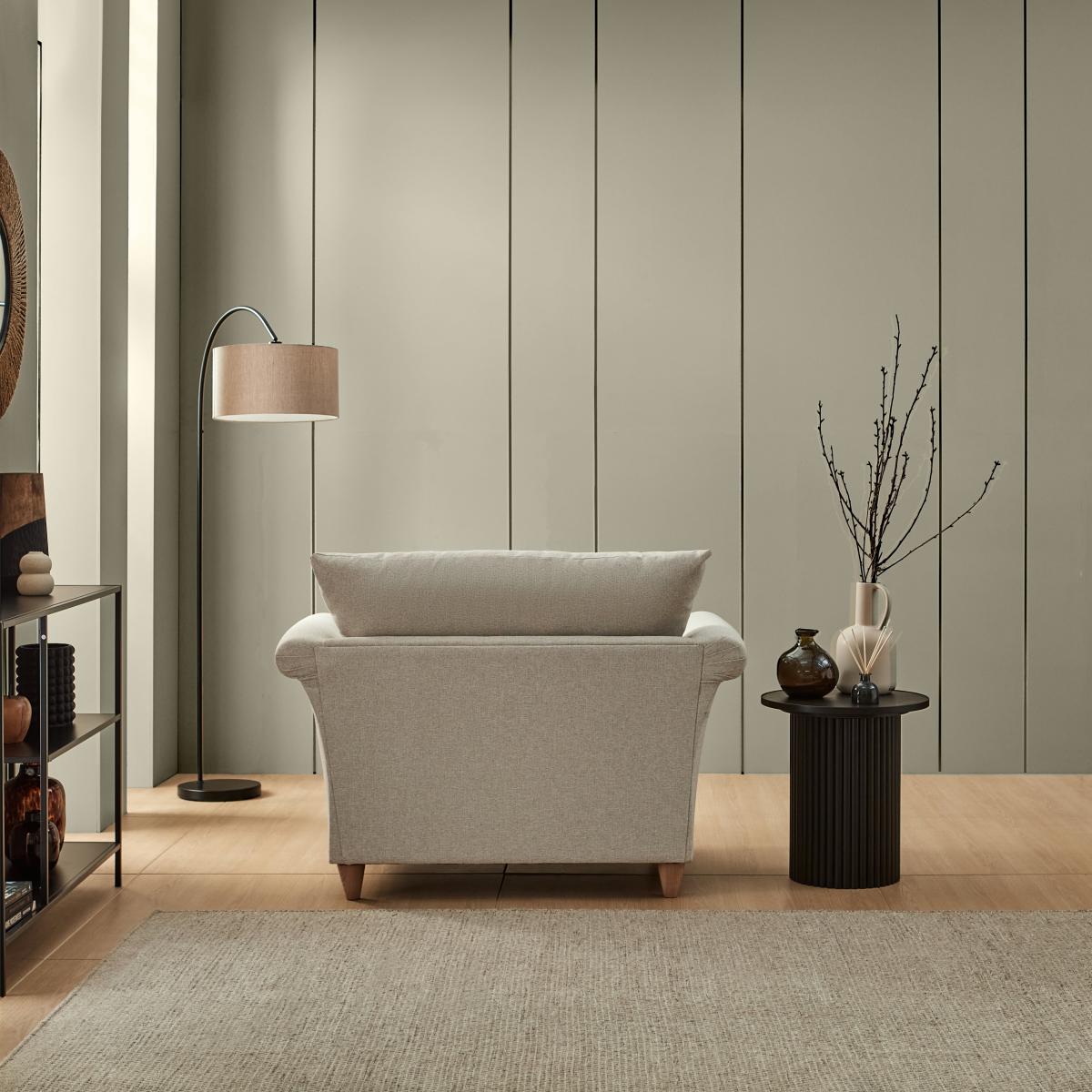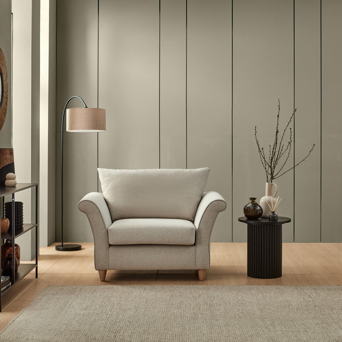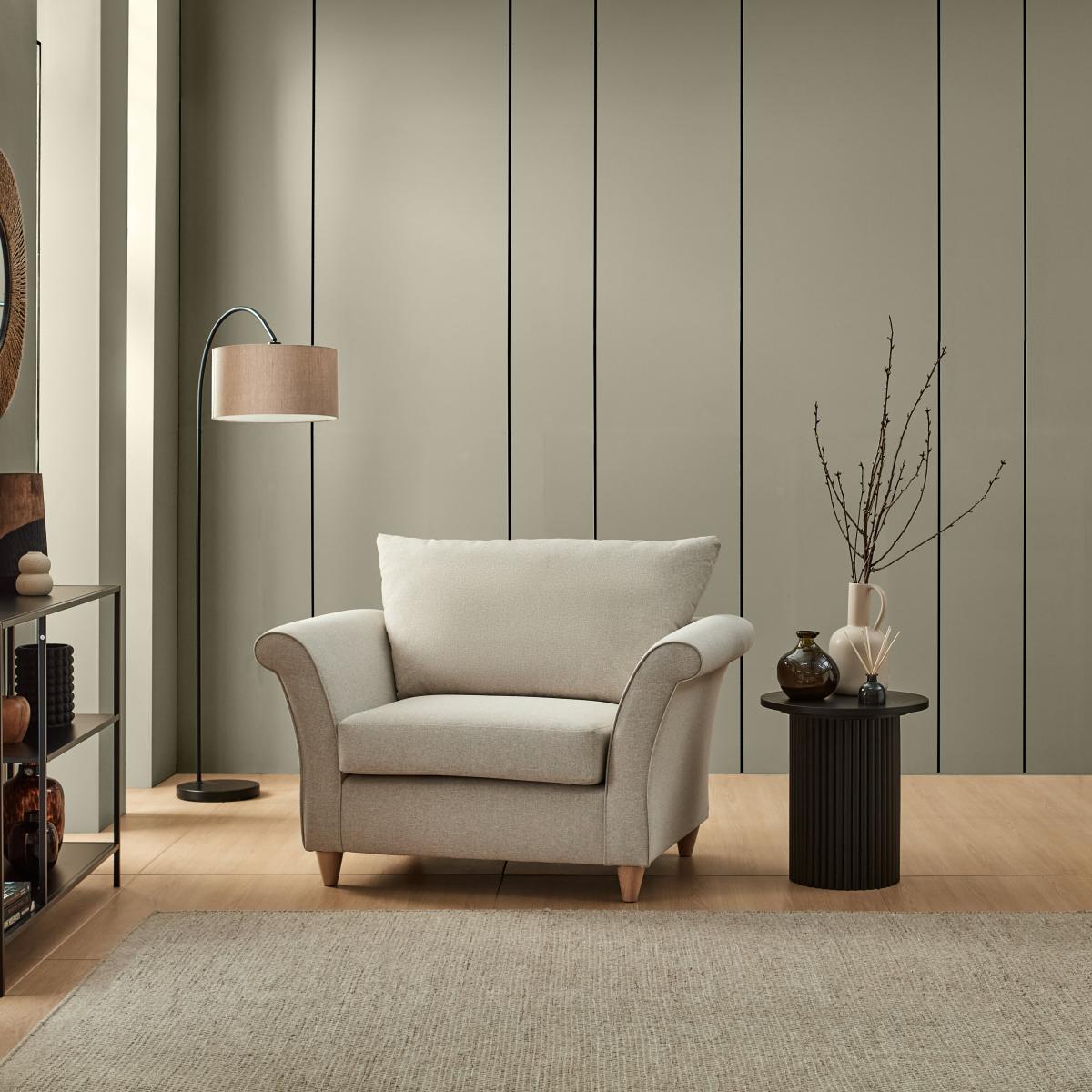 I’m a fan of the Dixie chair for its clean lines and neutral fabric, which make it a great anchor piece in both contemporary and Scandi-inspired spaces. The soft-touch upholstery feels inviting without looking too bulky, so it works well in living rooms where you want comfort without sacrificing a streamlined aesthetic. To style it, pair the chair with a slim-leg side table and a floor lamp for a reading nook, or position it opposite a low coffee table in a minimalist lounge. Add a textured throw or a tonal cushion in muted greens or clay to introduce subtle contrast. Its light wooden feet also complement oak or ash flooring beautifully.