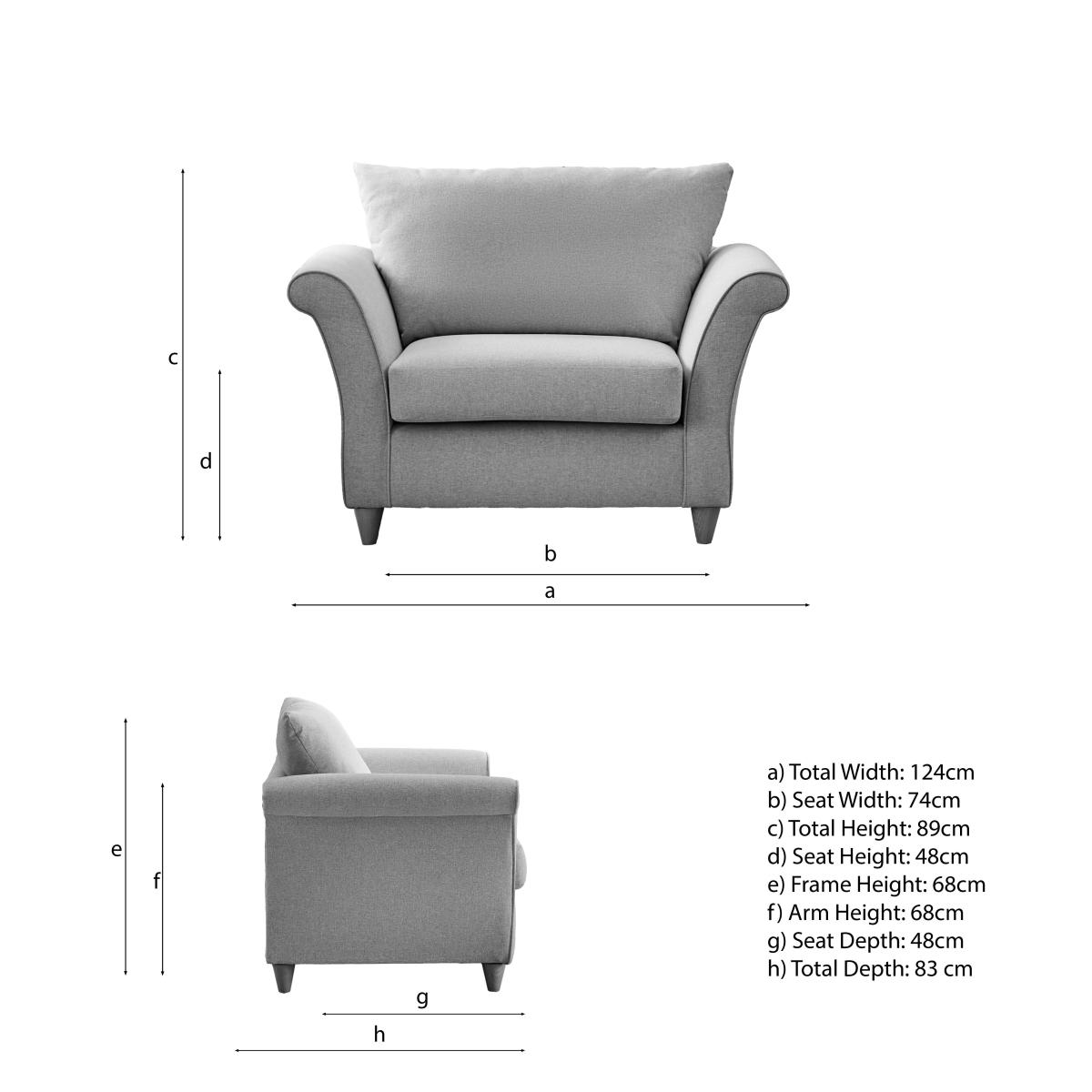* Upholstered Armchair* Soft Fabric* Curved Arms Crafted with the utmost care and attention to detail, this armchair features a soft textured fabric available in a selection of captivating colours. Sink into its sumptuous foam filled seat and relax against the cosy fibre filled scatter back cushion, designed to provide unparalleled comfort. With its compact design, the Dixie Armchair is the perfect addition to any living space, promising to elevate both style and comfort effortlessly.