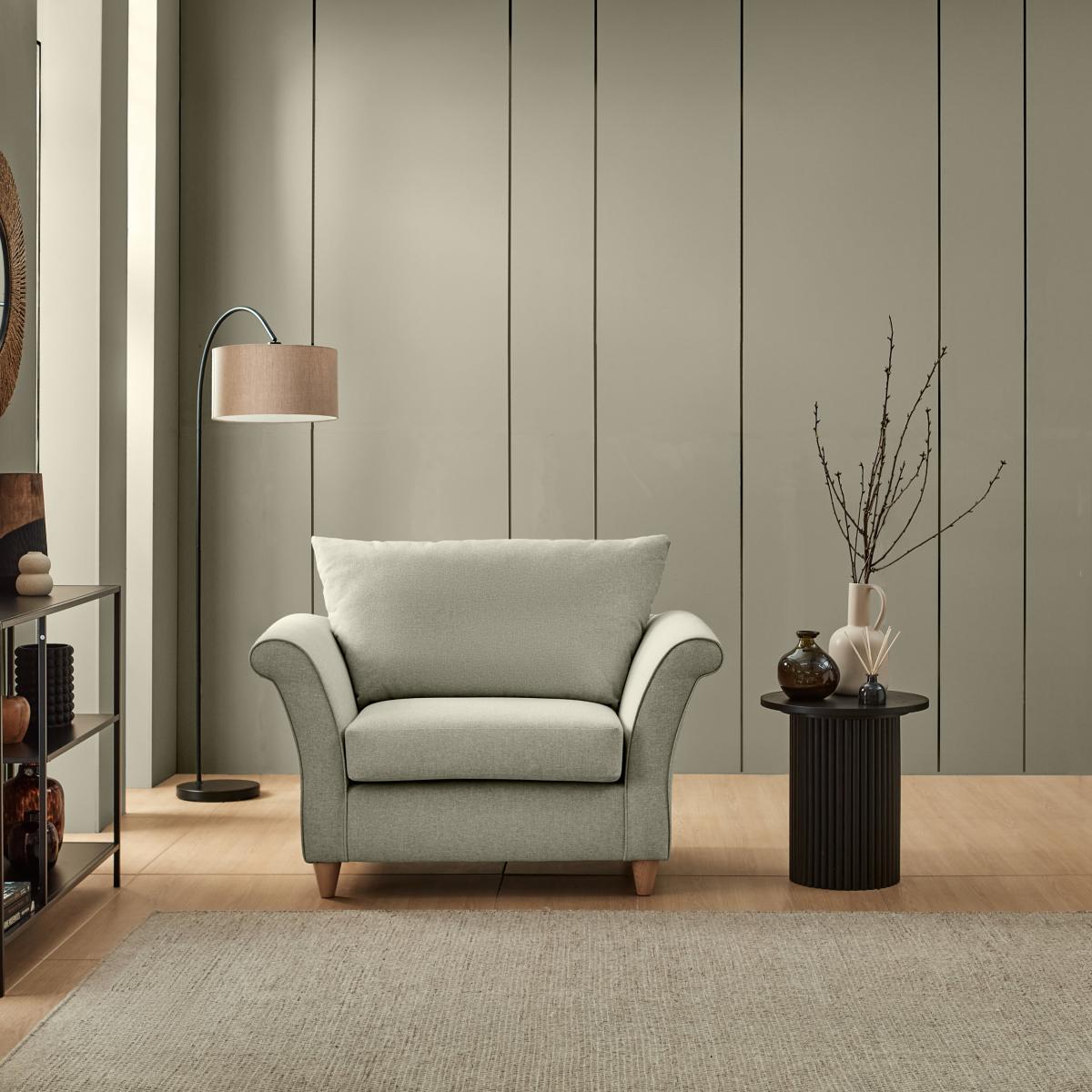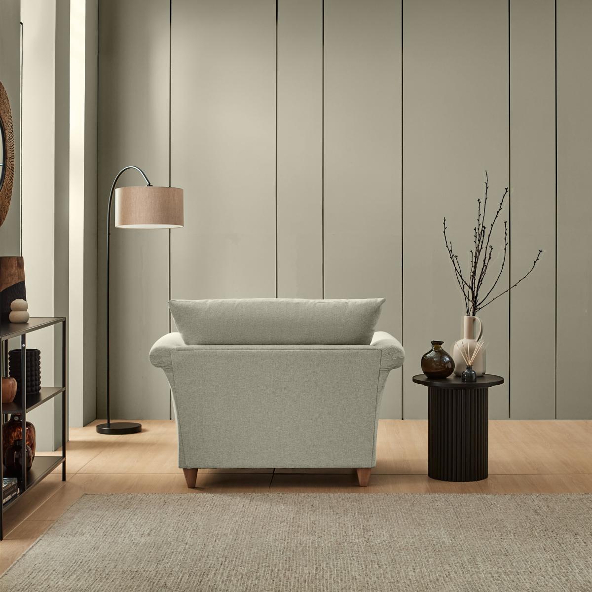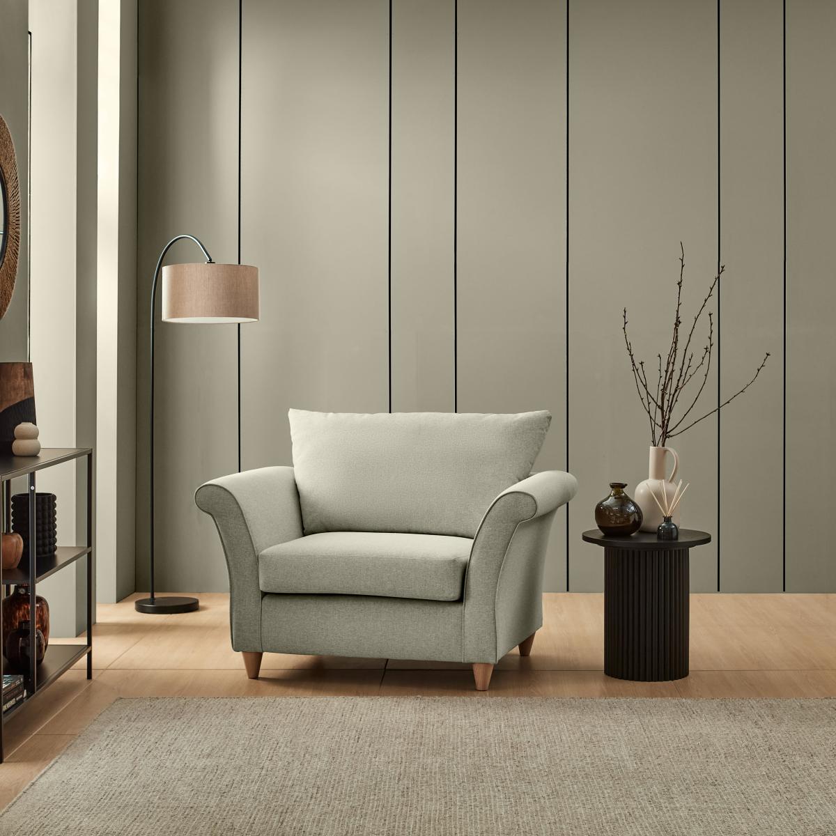 * Upholstered Armchair* Soft Fabric* Curved Arms Crafted with the utmost care and attention to detail, this armchair features a soft textured fabric available in a selection of captivating colours. Sink into its sumptuous foam filled seat and relax against the cosy fibre filled scatter back cushion, designed to provide unparalleled comfort. With its compact design, the Dixie Armchair is the perfect addition to any living space, promising to elevate both style and comfort effortlessly.