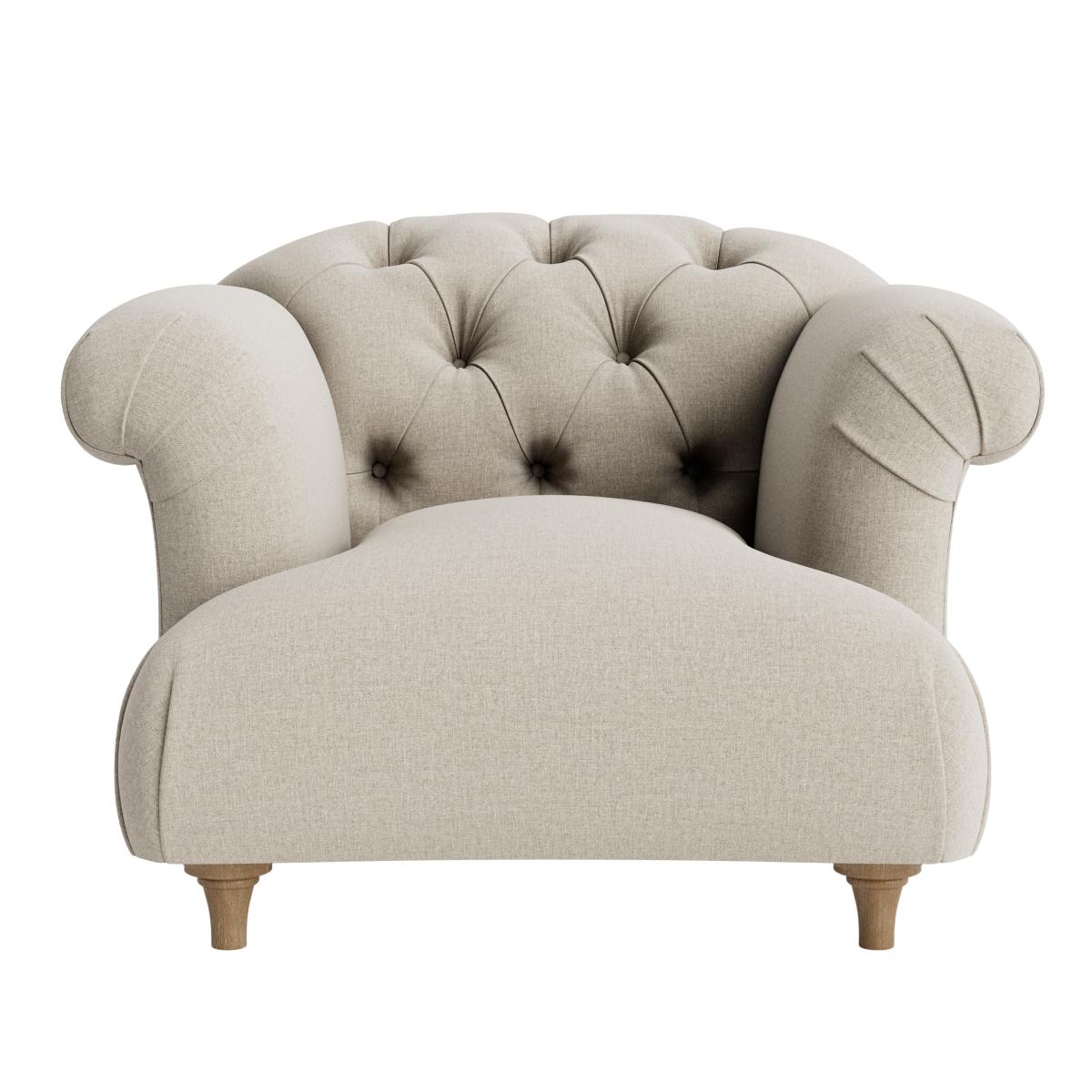 I love this armchair for its classic yet versatile design, making it an excellent addition to both traditional and contemporary interiors. Its cosy, tufted back and soft curves make it perfect for creating a welcoming reading corner or accent piece in a living room or bedroom. To style this chic bit of furniture, consider pairing it with neutral-toned cushions for a relaxed look or adding a throw for extra softness. It works well in warm, layered interiors with textured fabrics and natural wood accents, or as a statement piece in a minimalist scheme to bring some cosy charm. Practical tips include placing it near good lighting and complementing it with a side table or small lamp for functionality.