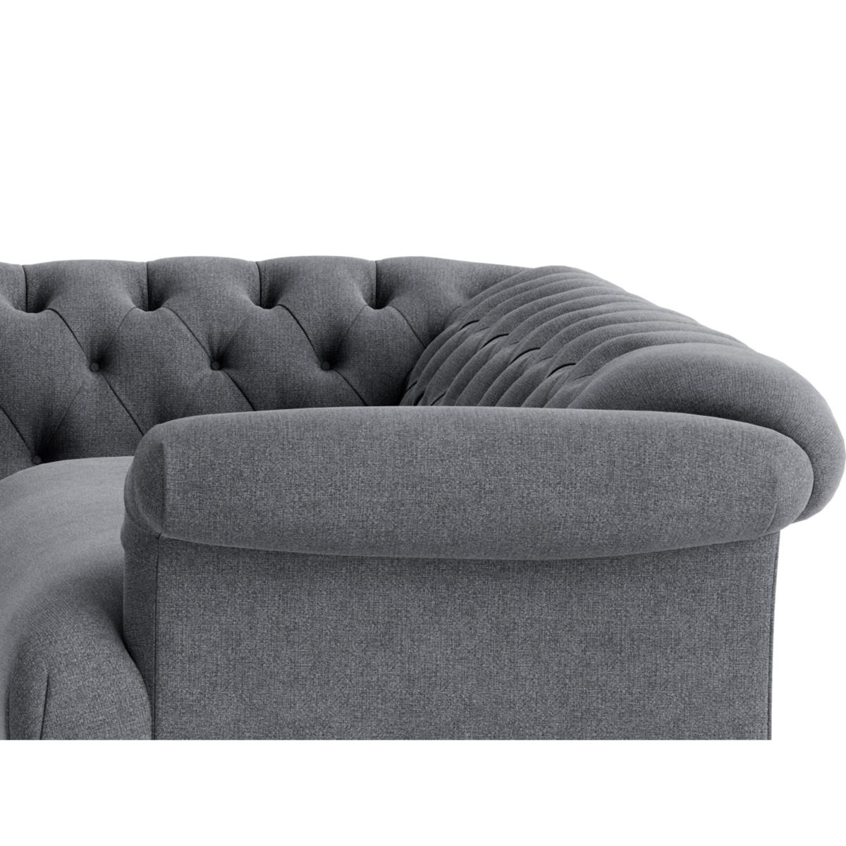 I love this corner sofa because of its timeless Chesterfield-inspired design, which adds a touch of sophistication to any living space. It works particularly well in traditional or eclectic interiors, where its classic button-tufted detailing can be complemented with vintage accessories or modern art for a balanced look. For styling tips, consider pairing it with contrasting cushions or textured throws to soften the look, and position it in a spacious area to highlight its generous proportions. Its neutral grey tone makes it versatile and easy to coordinate with colour schemes, making it an excellent anchor piece in both cosy family rooms and more formal living areas.