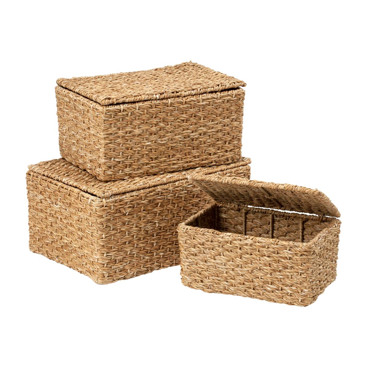 These baskets are a great addition for adding natural texture and organisation to various interiors. I love the neutral tone, which makes them versatile enough to fit into both modern and rustic styles. They work particularly well in linen closets, bathroom storage, or on open shelving in living rooms and kitchens. Practical styling tips include stacking them to create visual interest or using them as colourful alternatives to traditional boxes for hiding clutter. Their understated design encourages a clutter-free aesthetic while keeping essentials conveniently close at hand.