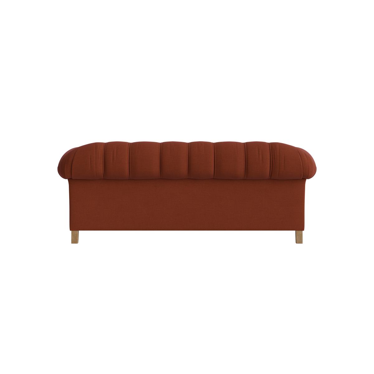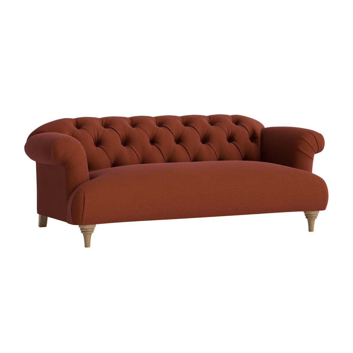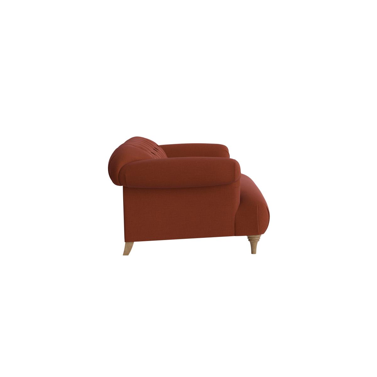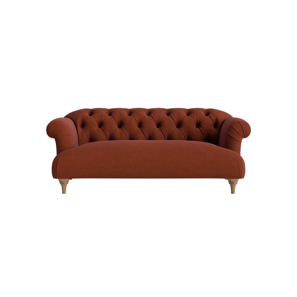 I love the damsel sofa for its classic, timeless appeal and versatile silhouette. It works particularly well in both traditional and eclectic interiors, adding a touch of sophistication without feeling too formal. Its button-tufted back and curved arms lend a welcoming charm, making it ideal for cosy living rooms or sitting areas. For styling, consider pairing it with patterned cushions and textured throws to add visual interest, or keep it minimalist with neutral-toned accessories for a sleek, contemporary look. Its compact size also makes it a practical choice for smaller spaces or for creating a conversational seating zone. The warm rust shade adds richness to a room and can be complemented with earthy or contrasting colours, depending on your overall palette.