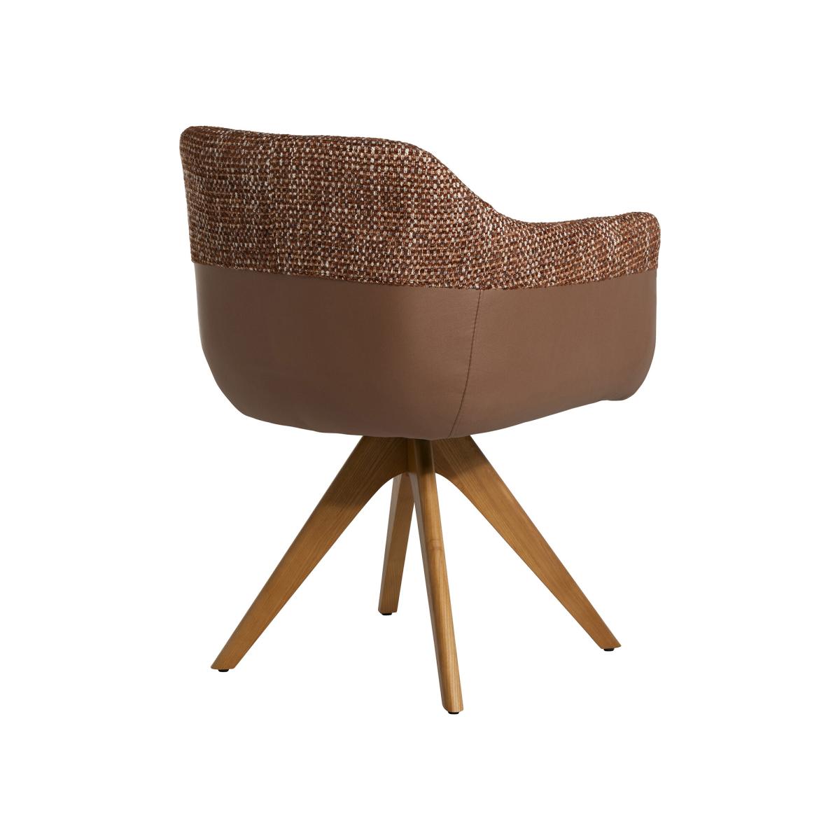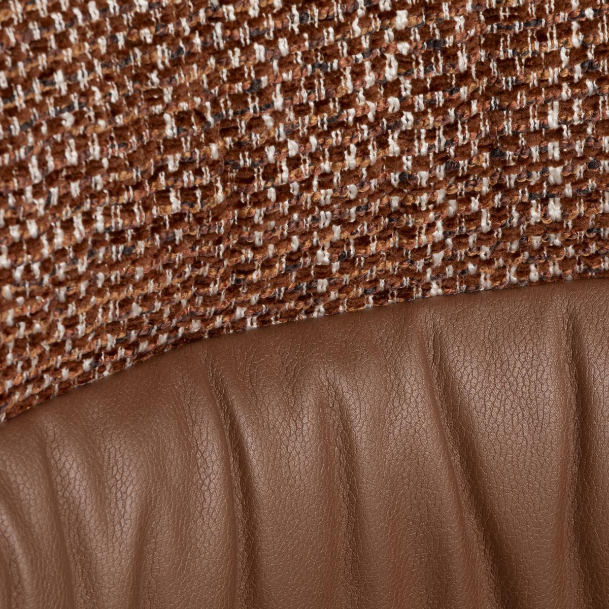 Add a contemporary touch to your dining space with the Dixon Brown Leather and Fabric Swivel Dining Chair. Combining supple brown leather with textured woven fabric, it offers both comfort and visual depth. The smooth swivel function ensures easy movement, while the solid wood legs provide stability and warmth. Ideal for modern or mid-century interiors, this chair blends craftsmanship and style, creating an inviting and refined dining experience.
