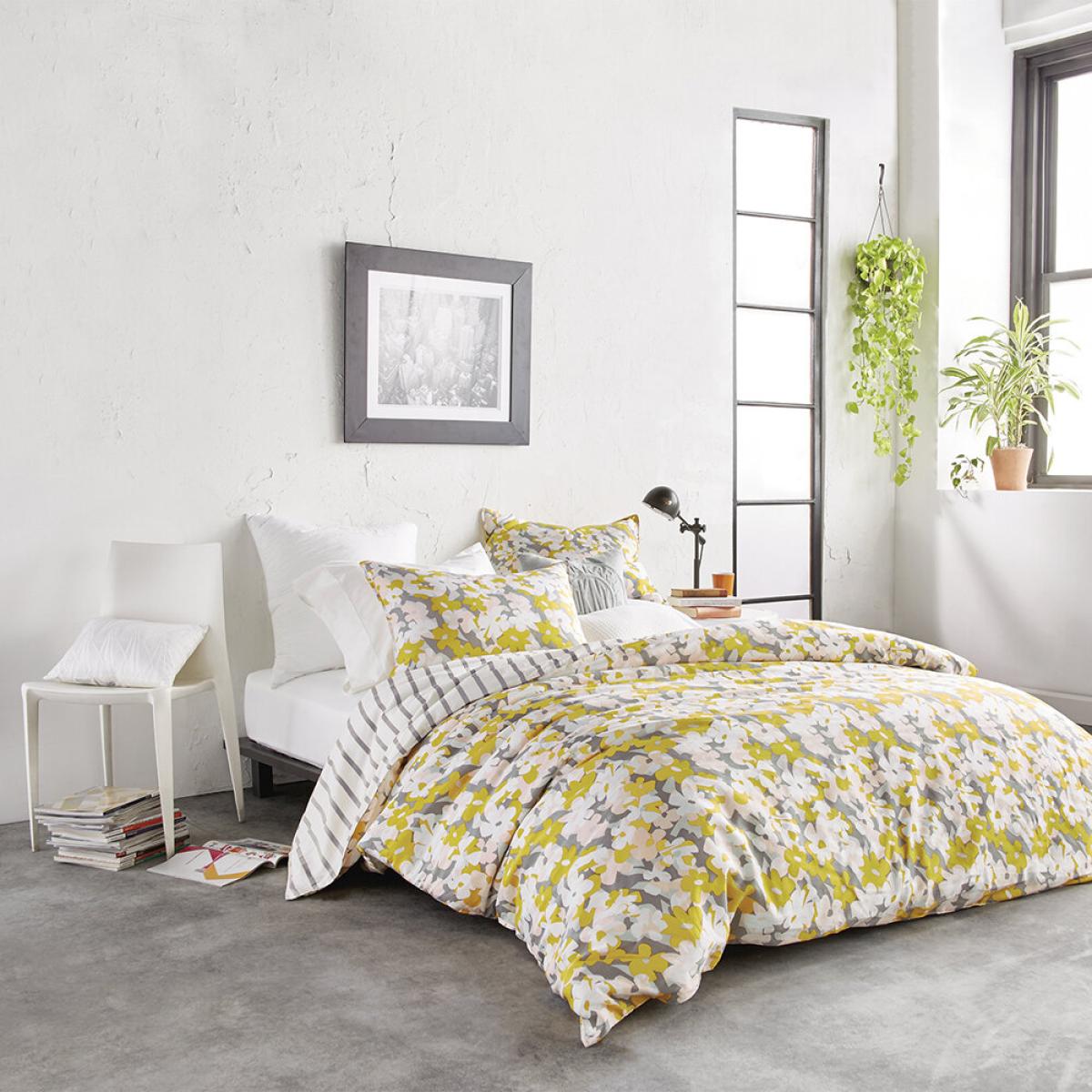 Give your sleeping space a fresh look with this Cutout Floral duvet cover from DKNY. Made from silky soft cotton sateen, this duvet cover printed with a charming floral print in yellow, grey and white. Reversing to a grey stripe, a matching pillowcase is also available. Key features: * Material: 100% cotton sateen * Dimensions: 230x220cm * Soft 220 thread count * Floral design * In yellow, grey and white * Reverses to the grey stripe * Machine washable * Pillowcases available separately