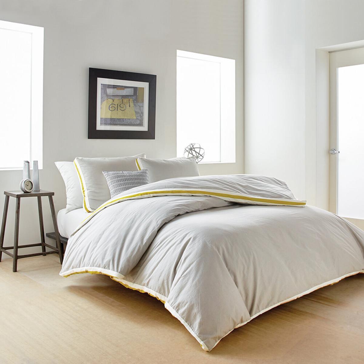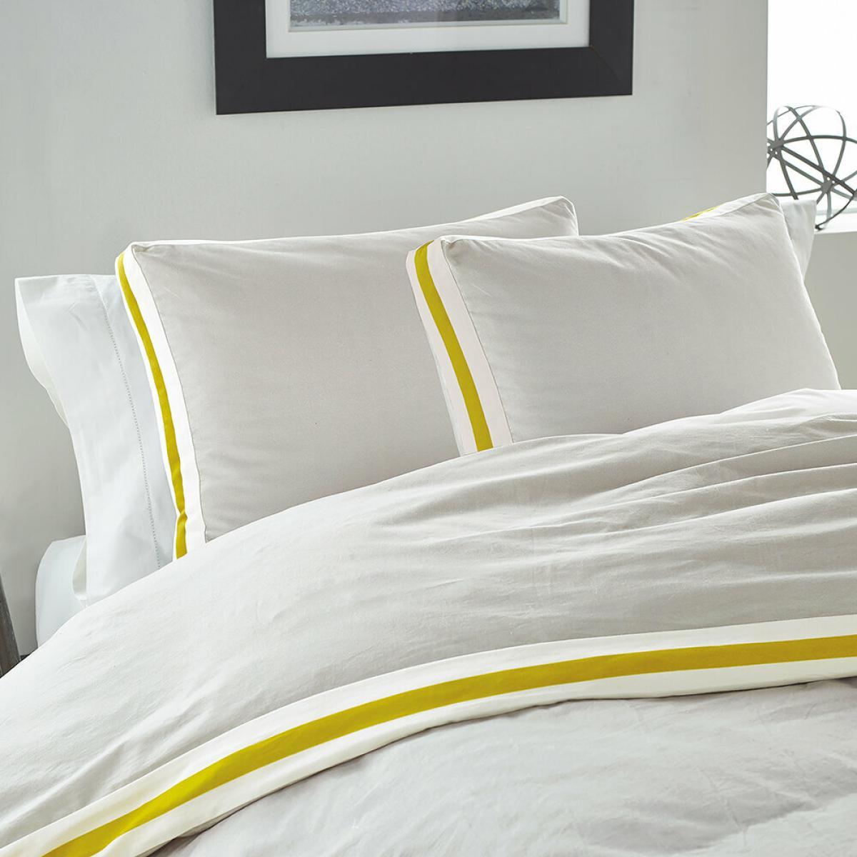 Give your sleeping space an active edge with this Sport stripe duvet cover from DKNY. Edged with a sporting stripe in yellow, this duvet cover has a sleek block colour design in pale grey. With a soft brushed cotton face and cotton percale reverse, it’s fabulous for sinking into after a long day.