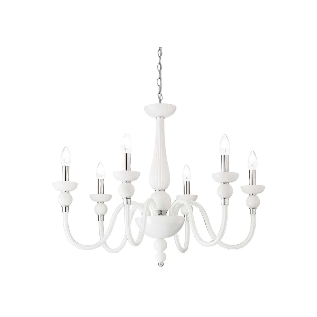 This is a simple, classic chandelier fitting which is sure to match any style room. Available in white or clear glass, you can choose the best ones to match the colour scheme of your room. The fitting is available in more than one size of chandelier, and a matching wall light which allows you to match up your light fittings throughout the room. The chrome details on the fitting add a further dimension to the fitting. Class one.