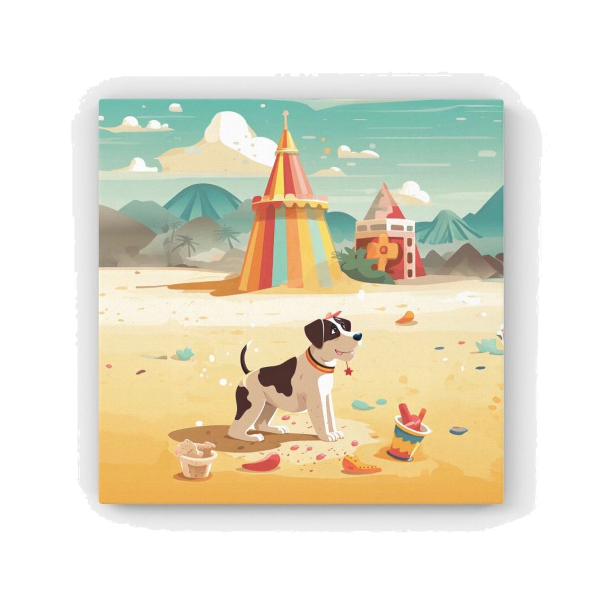 Doggy On A Beach Holiday HD Metal Print - Yellow / 30cm