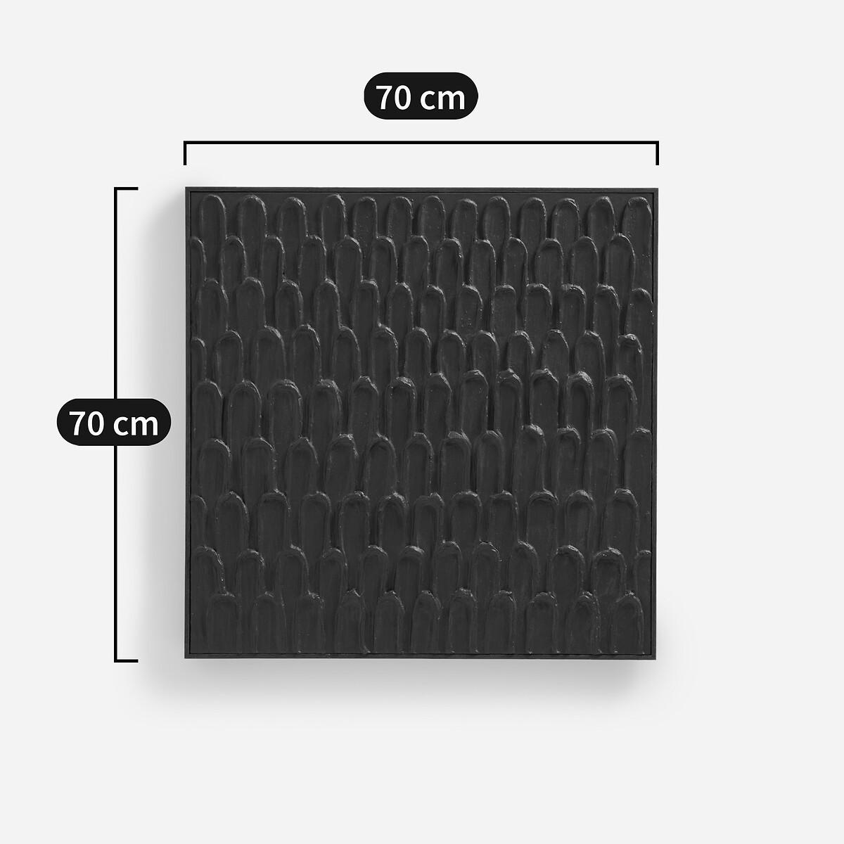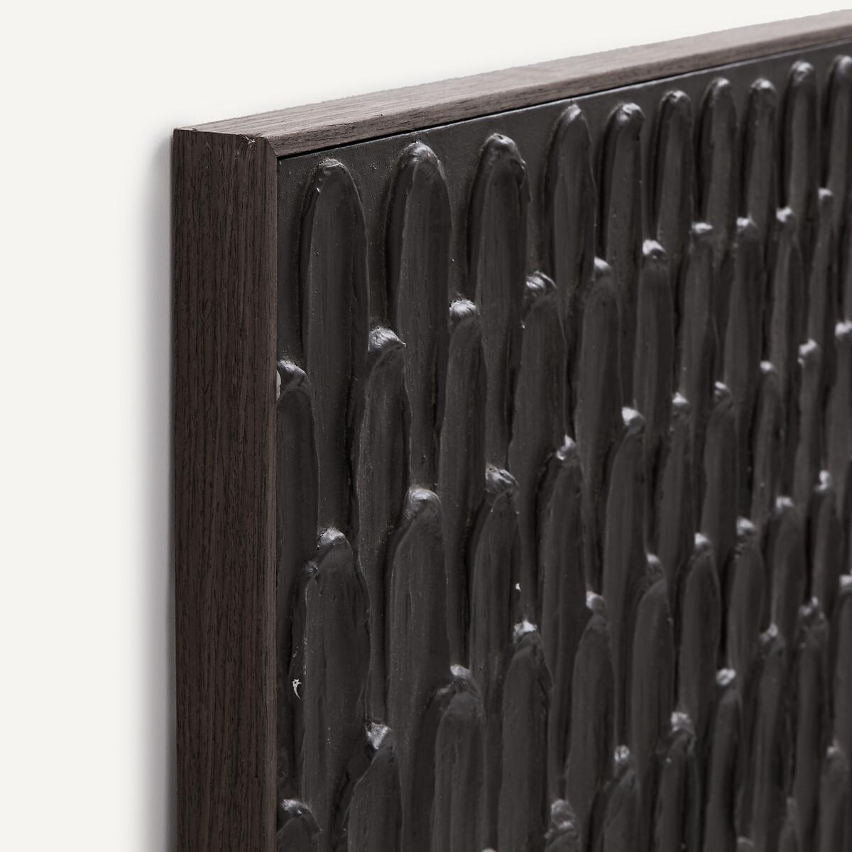 Inspired by a traditional cabinet-making technique that allows wood to be shaped into hollows, this Canvas evokes patterns carved into ebony. The scales are hand-painted with a knife, revealing the bumps in the material created by the craftsperson in the light. Product Details • Painting on canvas of 50% linen, 50% cotton • Walnut frame. FSC® certified wood • Hand painted: Each piece is unique • Plates for wall hanging (screws and plugs not provided)Dimensions • Width: 70cm • Height: 70cm • Thickness: 2cm • WOOD FROM SUSTAINABLY MANAGED FORESTS. FSC® certified wood comes from forests that are environmentally, socially and economically well managed. Dimensions and weight of parcel • 1 parcel • W80 x H15 x D80cm. 0.9kg