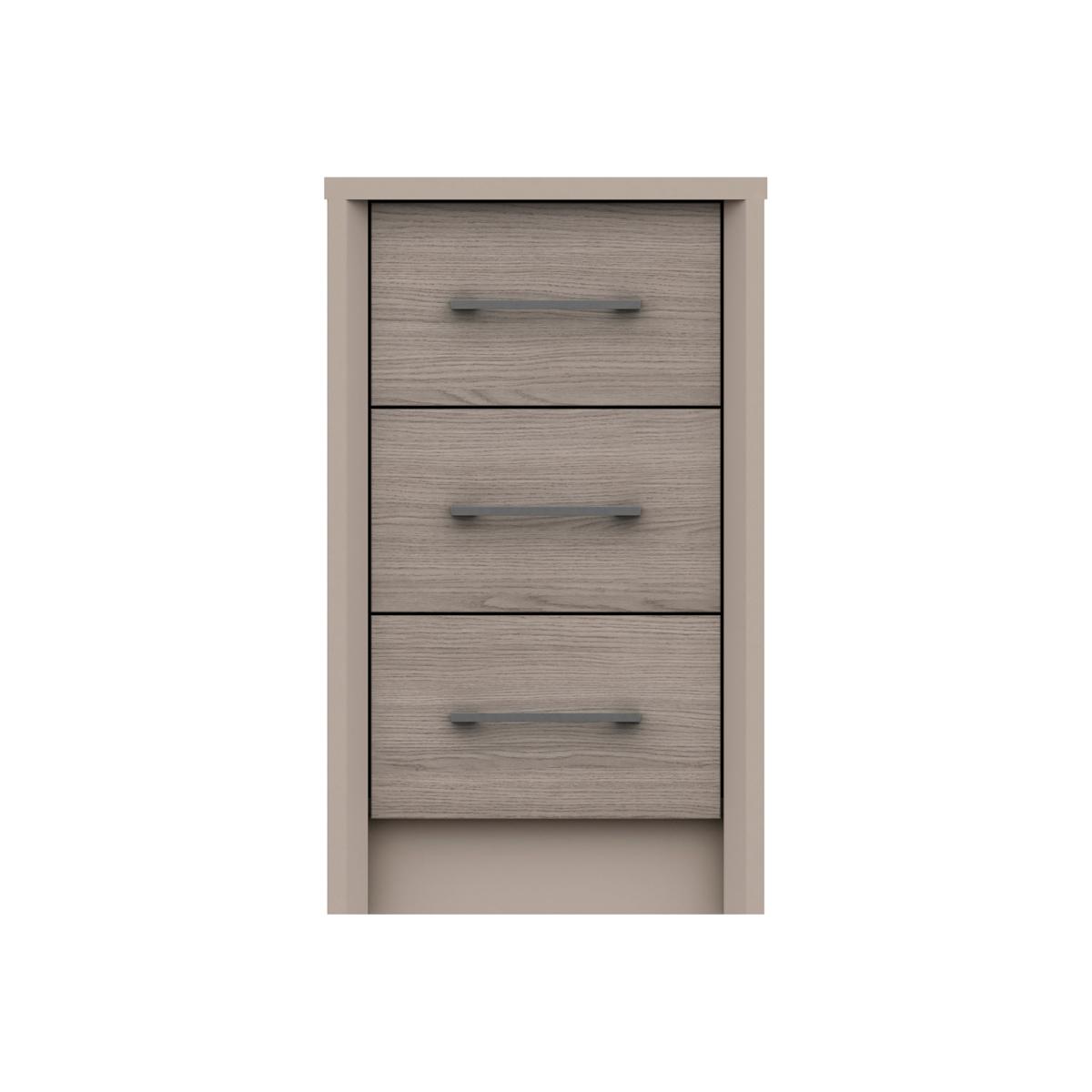 Crafted with a fired earth coloured carcass with complementing grey oak effect drawer fronts, the Dolan 3 drawer bedside table would make a stylish addition to any bedroom. This modern bedside features three spacious drawers complete with stylish brushed pewter finished slim handles, linen-look drawer insides, 8mm heavy duty bases and easy glide runners for ease of use. Please note, unfortunately we can not deliver this item to the Channel Islands, Ireland, Isle of White, Isle of Man or the Scottish Islands. Please note, this item cannot be delivered to Jersey.