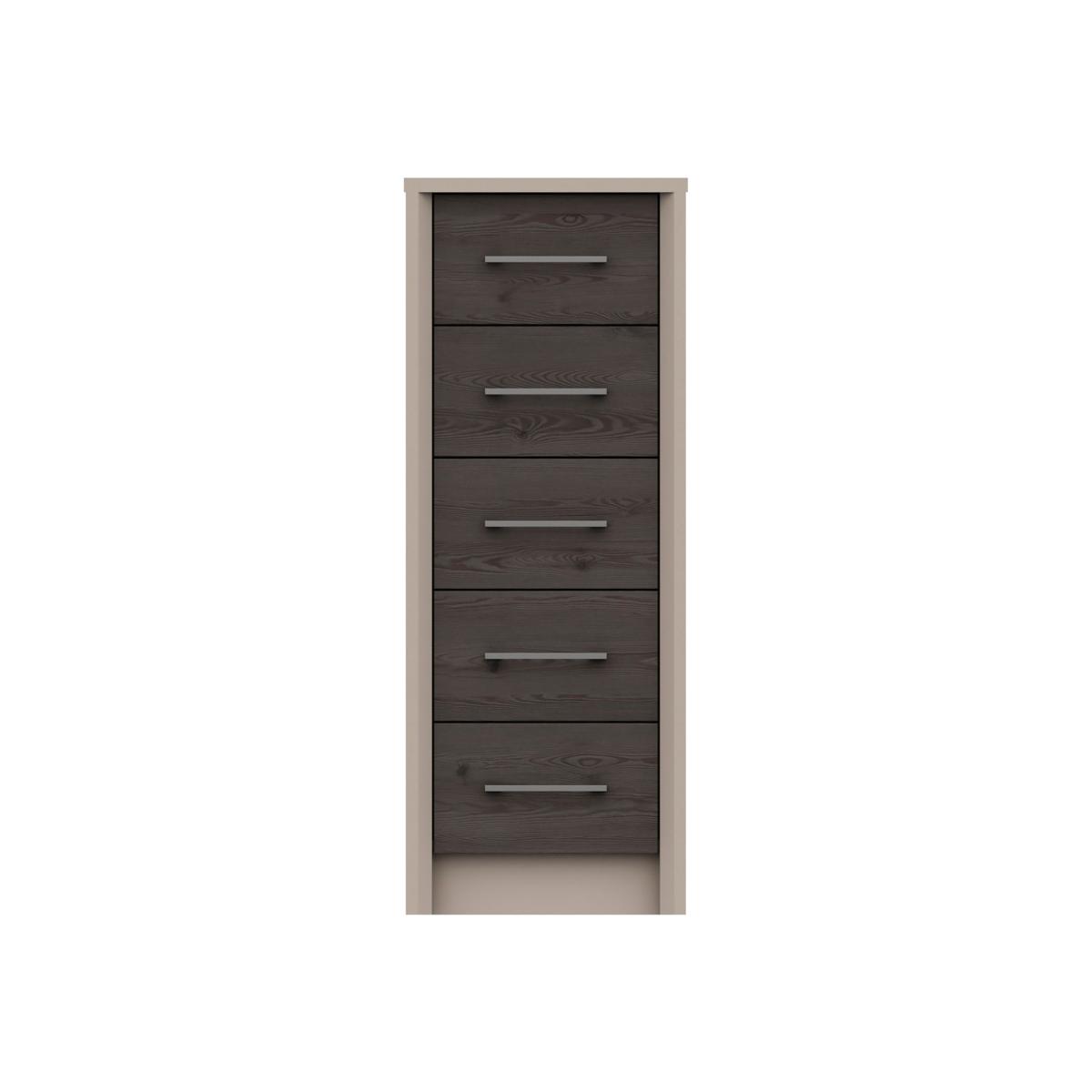 Crafted with a coloured carcass with complementing oak effect drawer fronts, the Dolan 5 Tall Chest of Drawers would make a stylish addition to any bedroom. This modern chest of drawers features five spacious drawers complete with stylish brushed pewter finished slim handles, linen-look drawer insides, 8mm heavy duty bases and easy glide runners for ease of use. Please note, unfortunately we can not deliver this item to the Channel Islands, Ireland, Isle of White, Isle of Man or the Scottish Islands. Please note, this item cannot be delivered to Jersey.