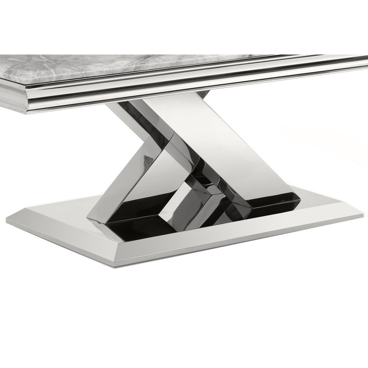 Live life in luxury with the Dolce collection of living and dining furniture – the perfect look for your glamorous home. Pieces are made from 100% marble with perfectly patterned light grey marbled tops. Bases sparkle with a chrome finish, a luxe look that you’ll also find on the collection’s dining chair legs and deep table edges. Grand in scale, the range includes a large dining table that seats eight, a round table seating six, a sideboard and occasional tables as well as two styles of opulent dining chair and several dining sets. The Dolce collection is exclusively available at Furniture Village. Bring home glamorous dining with the small Dolce dining table and four button back chairs. A true luxury table made from real marble and four beautiful chairs with chrome-effect studding. Why you'll love it. Fabulous dining set sparkles in polished marble and chrome. Glamorous style for luxurious living. 100% marble dining table has a beautiful light grey marbled finish. A special process ensures that the marbled surface is perfectly patterned. Chrome-finished table top trim and X-shaped pedestal base. Four dining chairs upholstered in black, blush, silver and navy. Button backs, chrome-effect metallic studding and quilted-effect stitching. Chrome-finished legs and handle on outer back. Exclusive to Furniture Village. What you need to know. Dining table is made with real marble. Seats up to 6. Use care to avoid scratching or marking the foil finish. Extremely heavy – please be careful when moving. Velvet may crush or show shading with use. This is normal and not a defect. A curved dining side chair is also available. Extra chairs can be purchased individually. Complete the look with the statement marble Dolce sideboard.