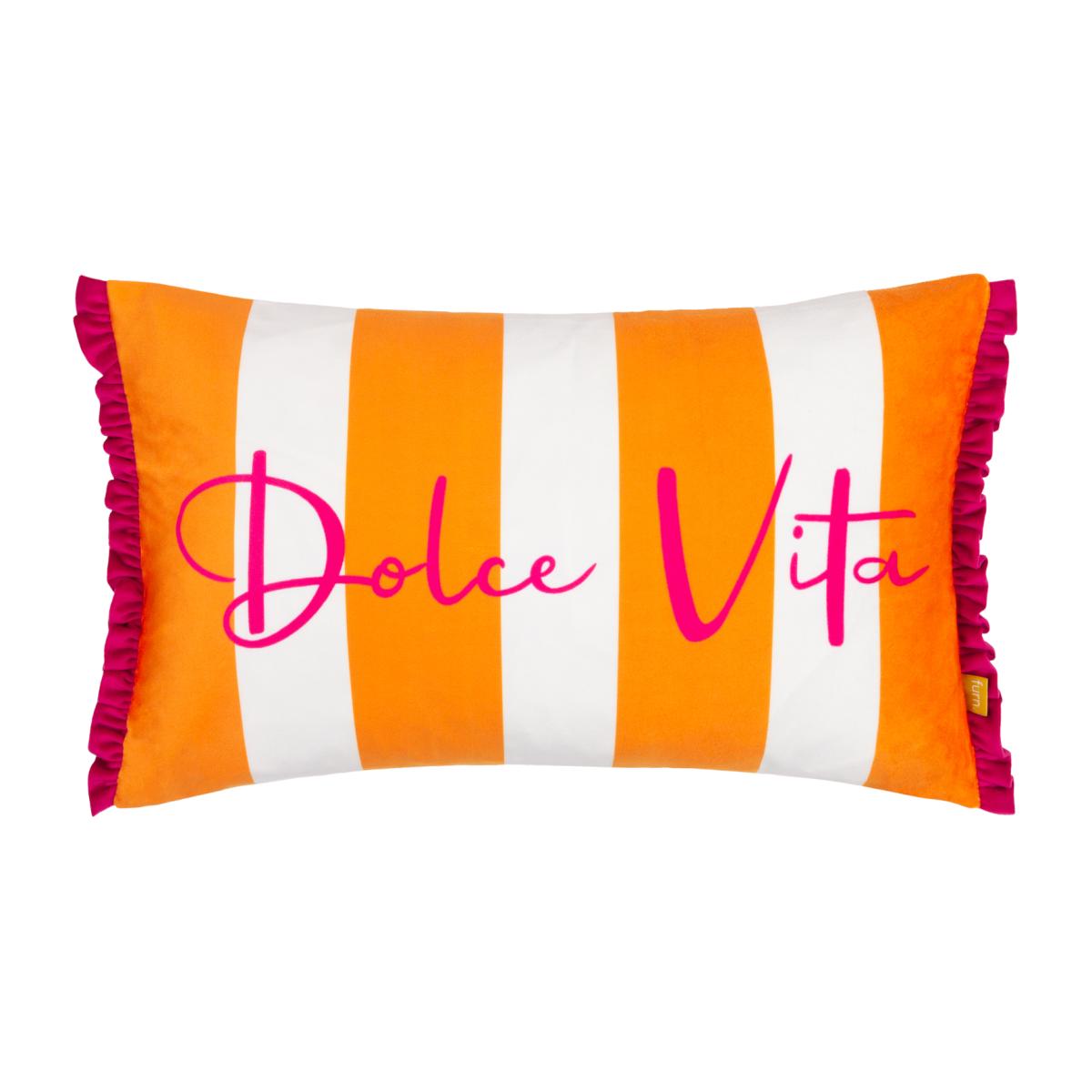 Dolcevita Striped Velvet Polyester Filled Cushion - Orange/Pink