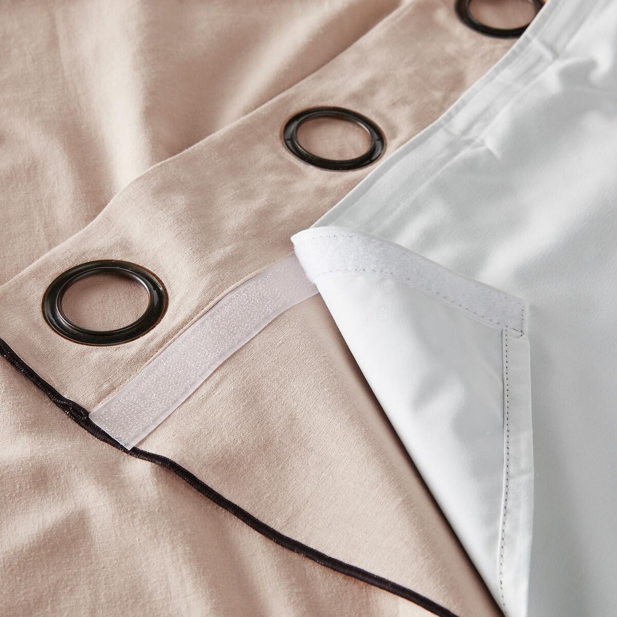 100% blackout, the Dolja lining adapts to your curtains to isolate you from the light and from outside view. Perfect for a bedroom without shutters, it provides total darkness. Easy to use, it is attached using a double self-adhesive and hook-and-loop system, so there's no need for sewing equipment. Product Details • 100% polyester • Blackout fabric • Supplied with a hook-and-loop strip sewn onto the panel + a self-adhesive strip to attach to your Curtain • Finished hem Care Advice • Machine washable at 30°CDimensions • Width 135cm x drop 240cm • Height 330 x width 135cm