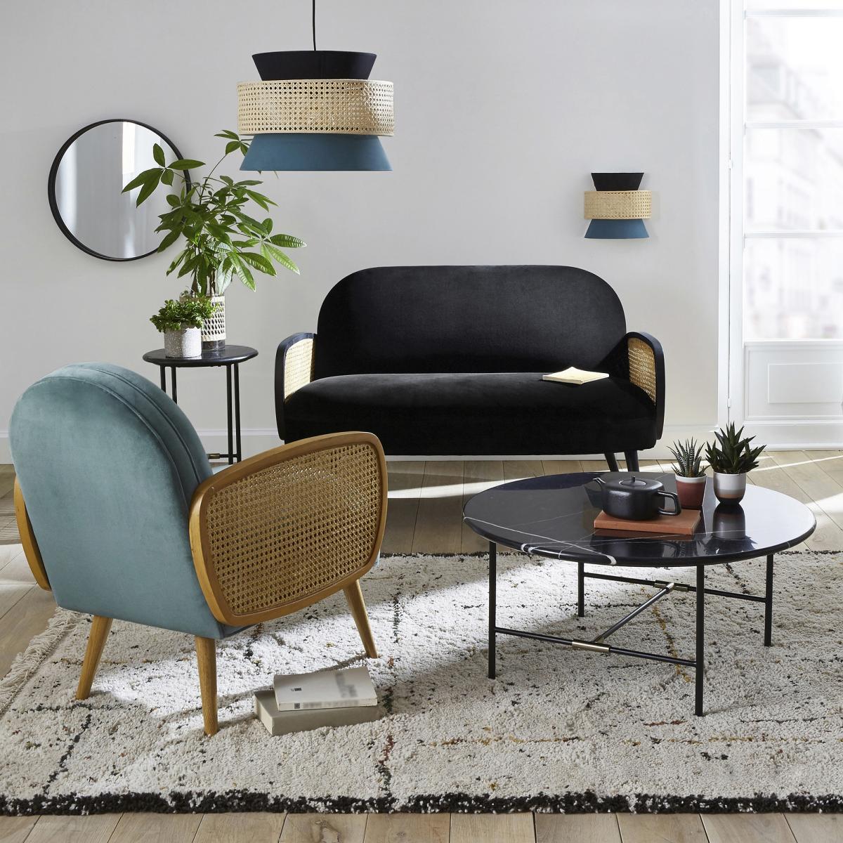 The Dolkie lightshade by La Redoute Interiors. Vintage style with a ring of rattan cane. Made in France.