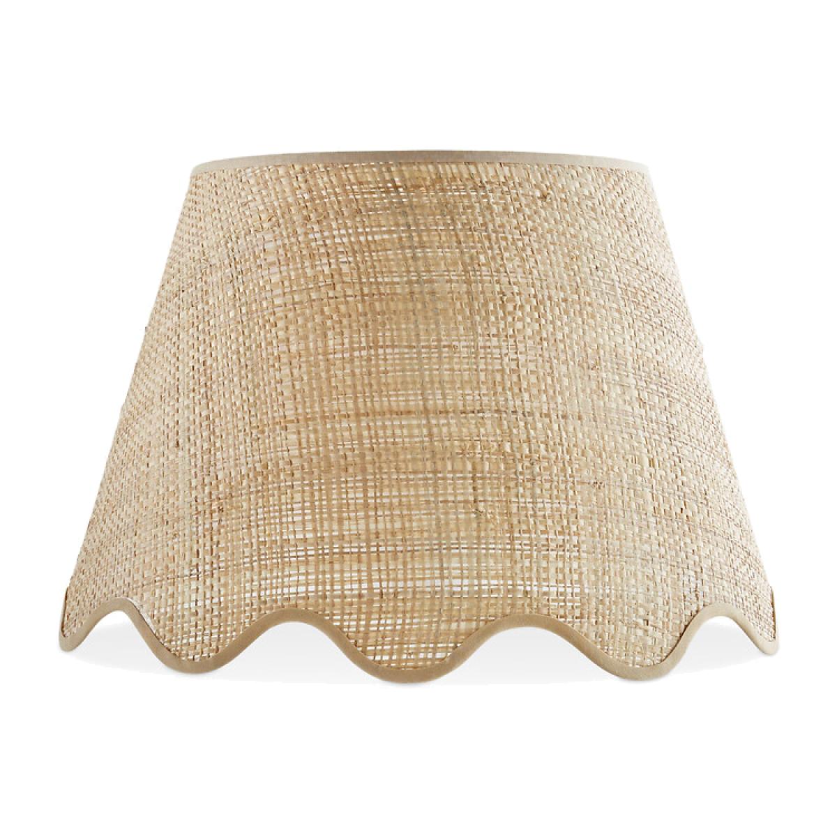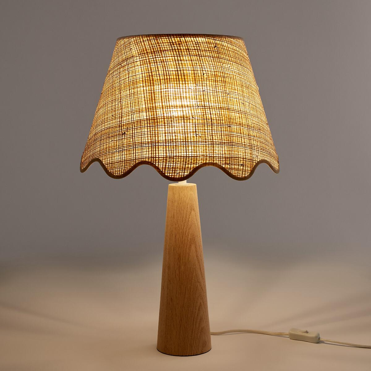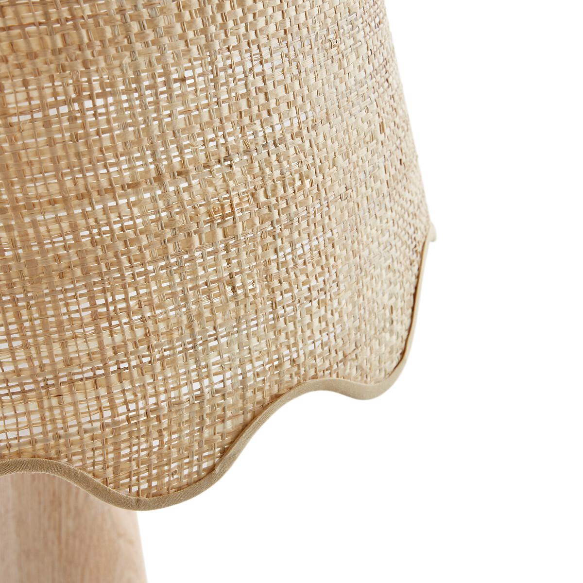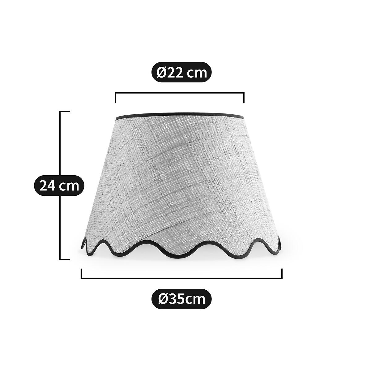 Bring in the light. The Dolkie raffia lampshade is ideal for bringing a natural note to a contemporary interior. It helps to create a soft and warm atmosphere. Made in France. Product Details • Wave-effect raffia lampshade, with cotton braid • White epoxy steel structure • Compatible with E27 bulb (not included) • Lampshade for table lamp or floor lamp • Non-electrified. Dimensions • Diameter at the top : 22cm • Diameter at the bottom: 35cm • Height: 24cm • Made in France. Dimensions and weight of parcel1 parcel • L36 x H28 x D36cm. 0.9kg