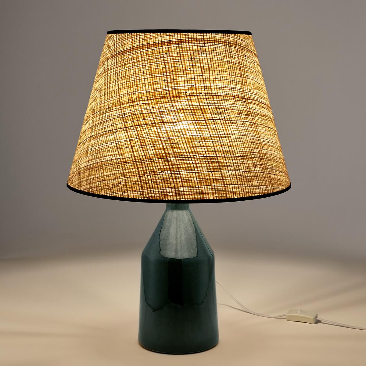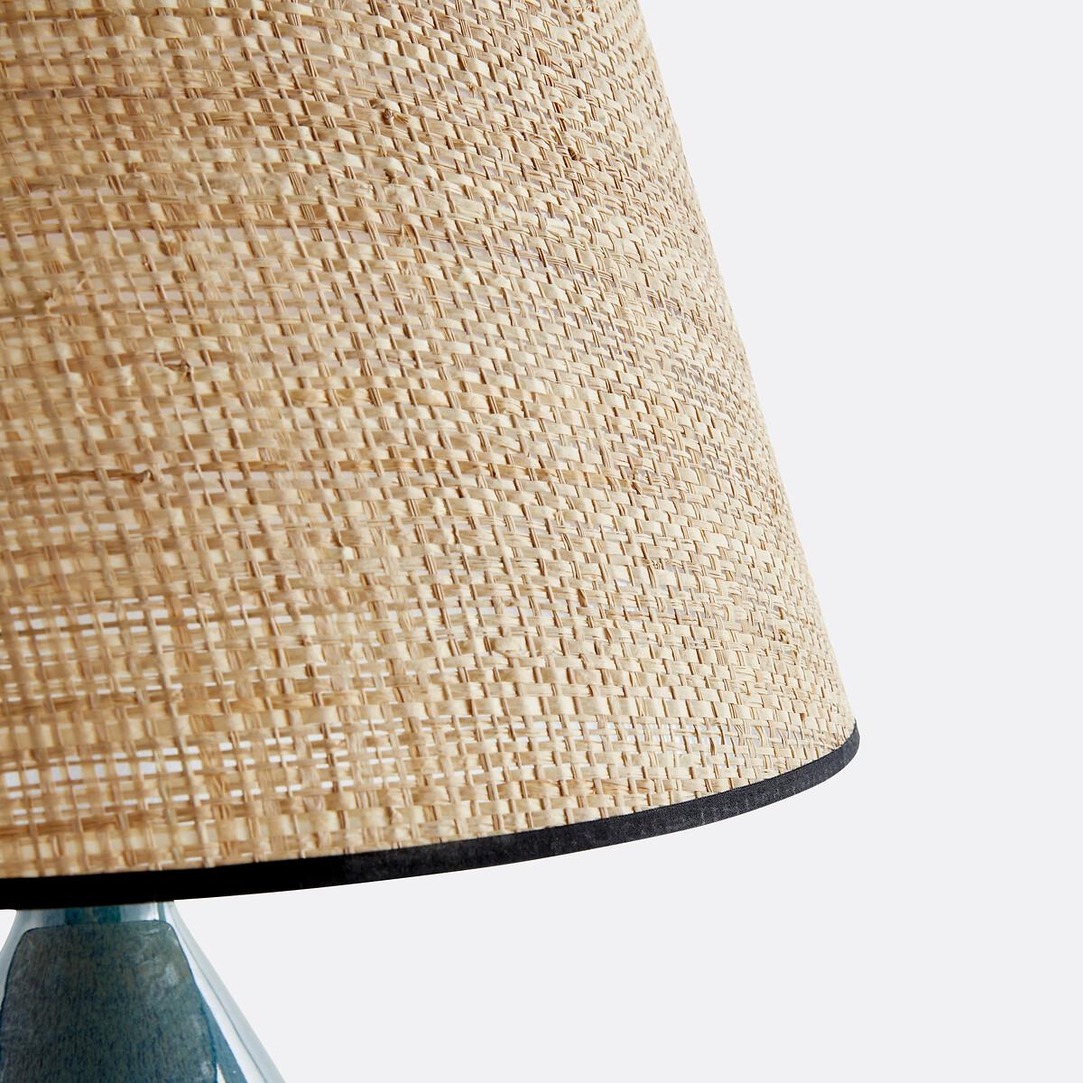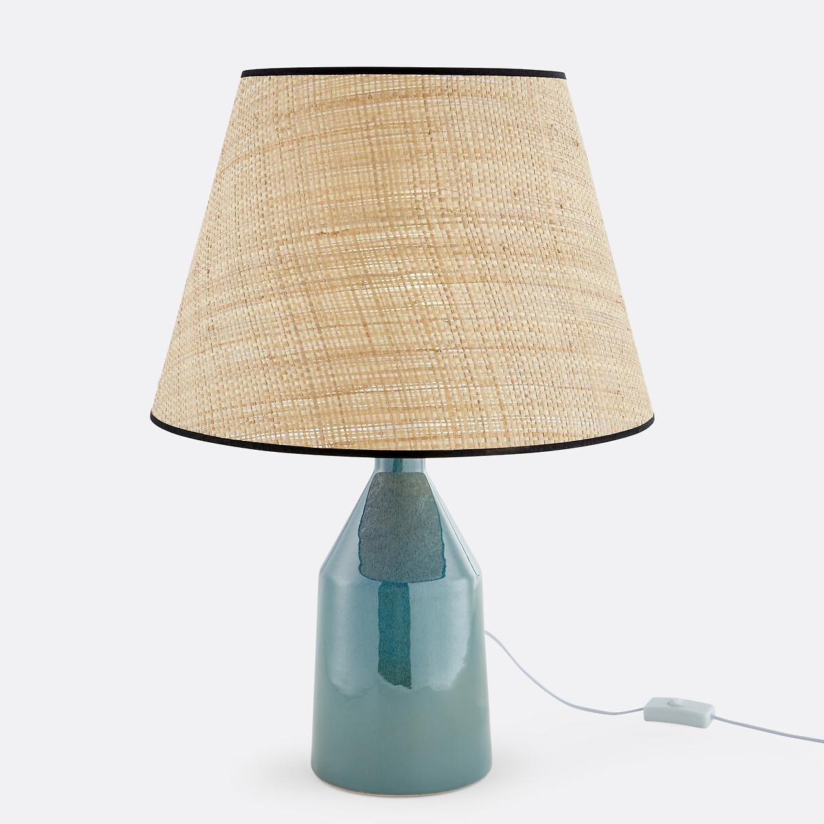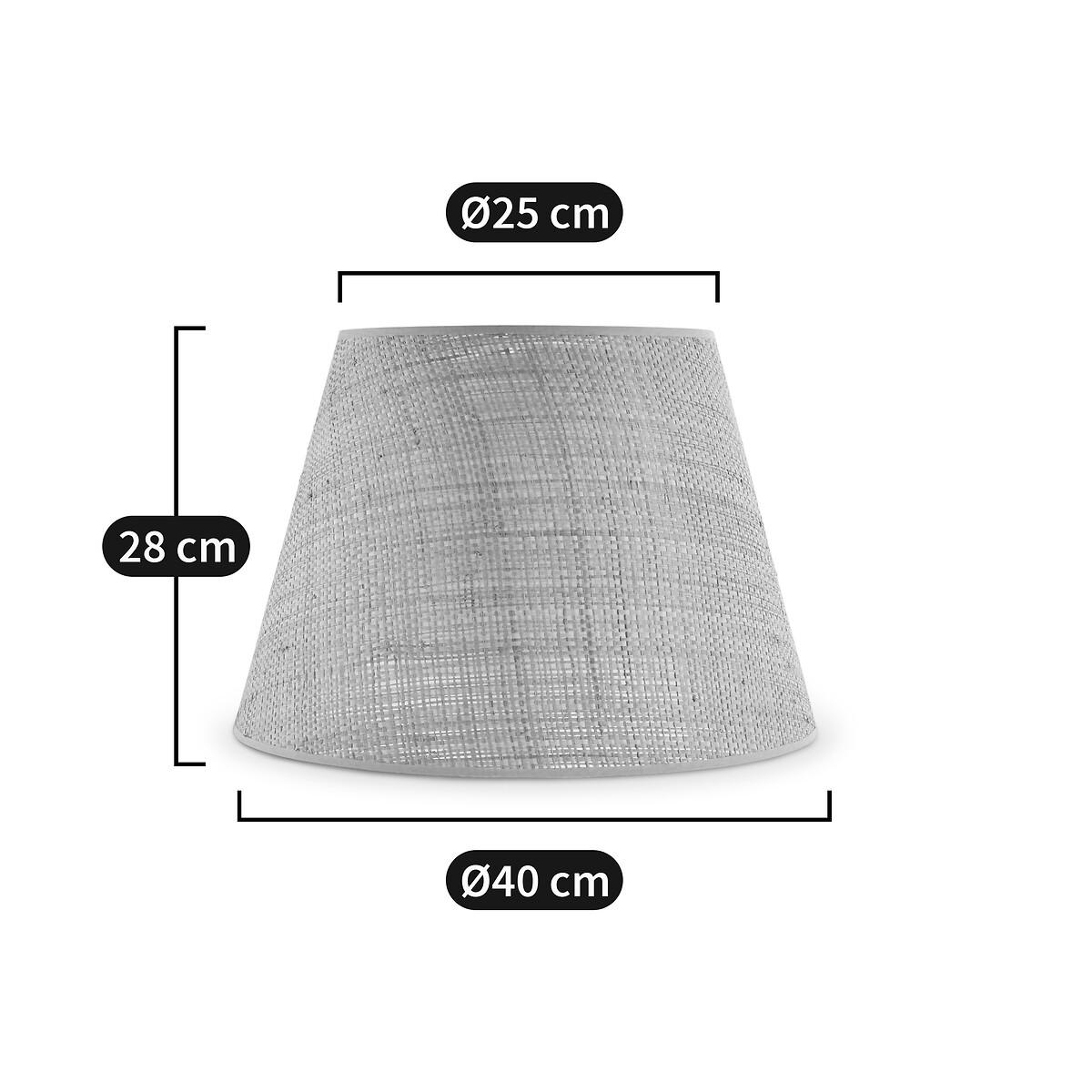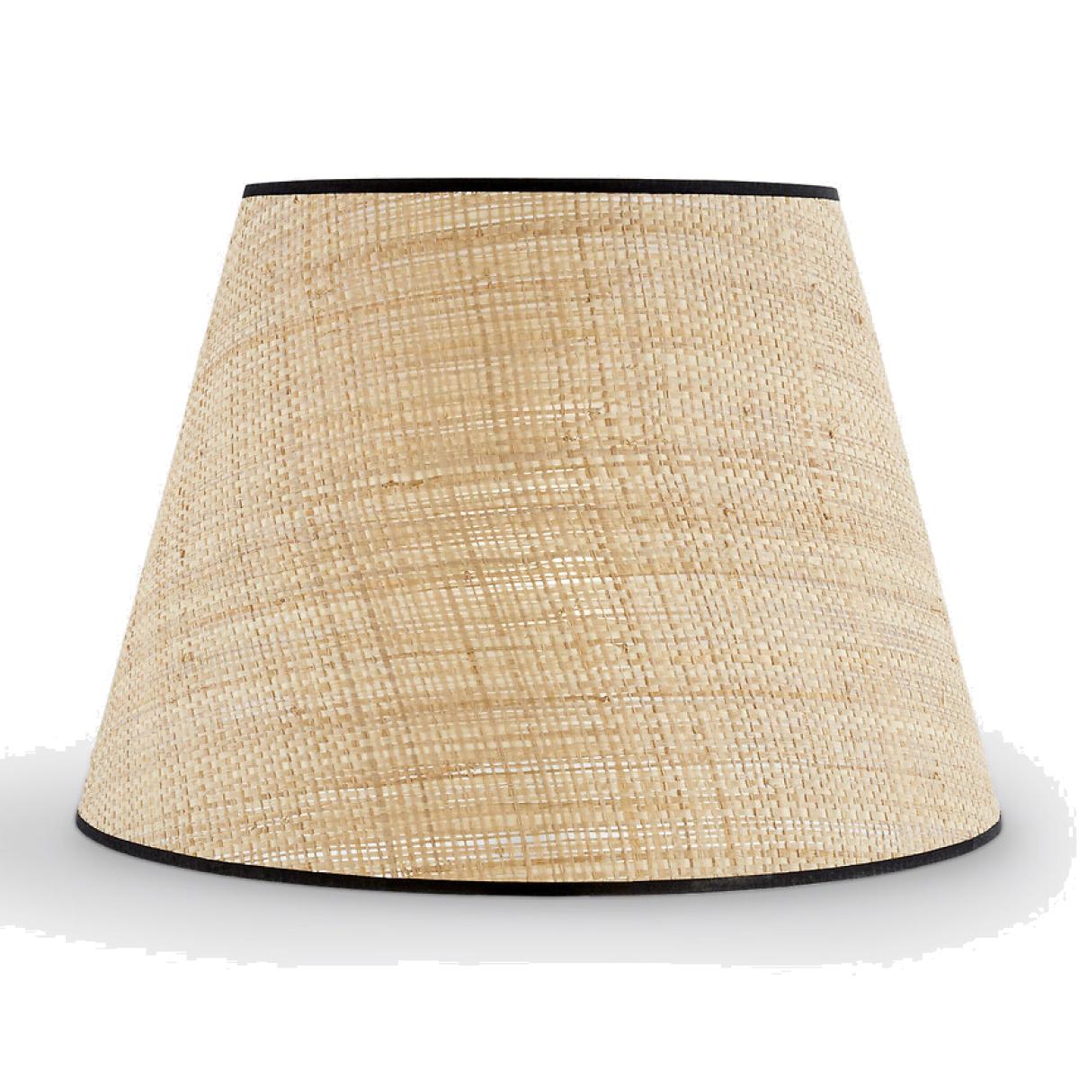 Bring in the light. The Dolkie raffia lampshade is ideal for bringing a natural note to a contemporary interior. It helps to create a soft and warm atmosphere. Made in France. Product Details • Raffia lampshade, with cotton braid • Conical shape • White epoxy steel structure • Lampshade for table lamp or floor lamp • Supports E27 bulb (not supplied) • Non-electrified. Dimensions • Diameter at the top : 25cm • Diameter at the bottom: 40cm • Height: 28cm • Made in France. Dimensions and weight of parcel1 parcel • L41 x H33 x D41cm. 1.1kg